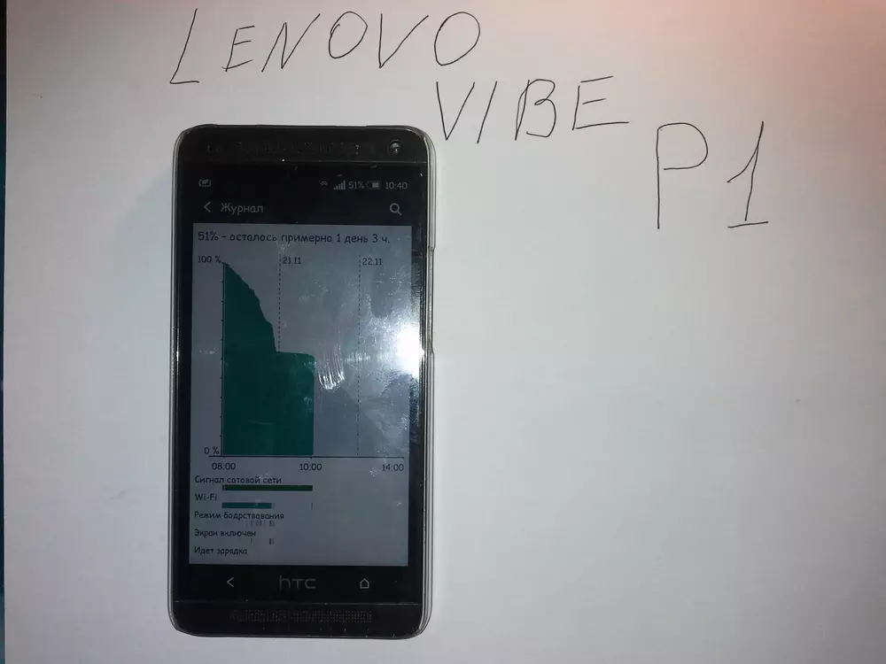 Уважаемые читатели! У вас есть возможность выиграть смартфон Lenovo Vibe P1, если вы примете участие в нашем конкурсе и сделаете снимок своего смартфона в режиме демонстрации графика разрядки аккумулятора вместе с надписью «Lenovo VIBE P1», сделанной любым удобным способом, кроме графического редактора — примеры таких снимков ниже.
