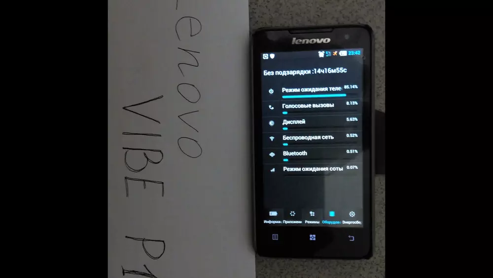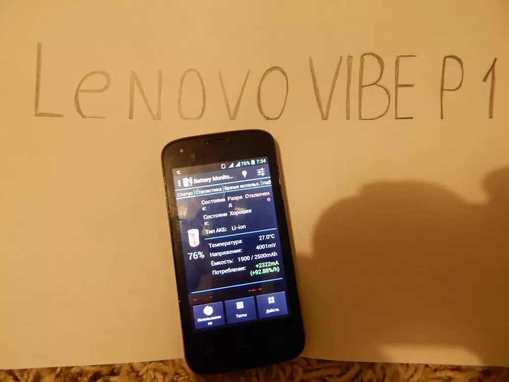 Уважаемые читатели! У вас есть возможность выиграть смартфон Lenovo Vibe P1, если вы примете участие в нашем конкурсе и сделаете снимок своего смартфона в режиме демонстрации графика разрядки аккумулятора вместе с надписью «Lenovo VIBE P1», сделанной любым удобным способом, кроме графического редактора — примеры таких снимков ниже.