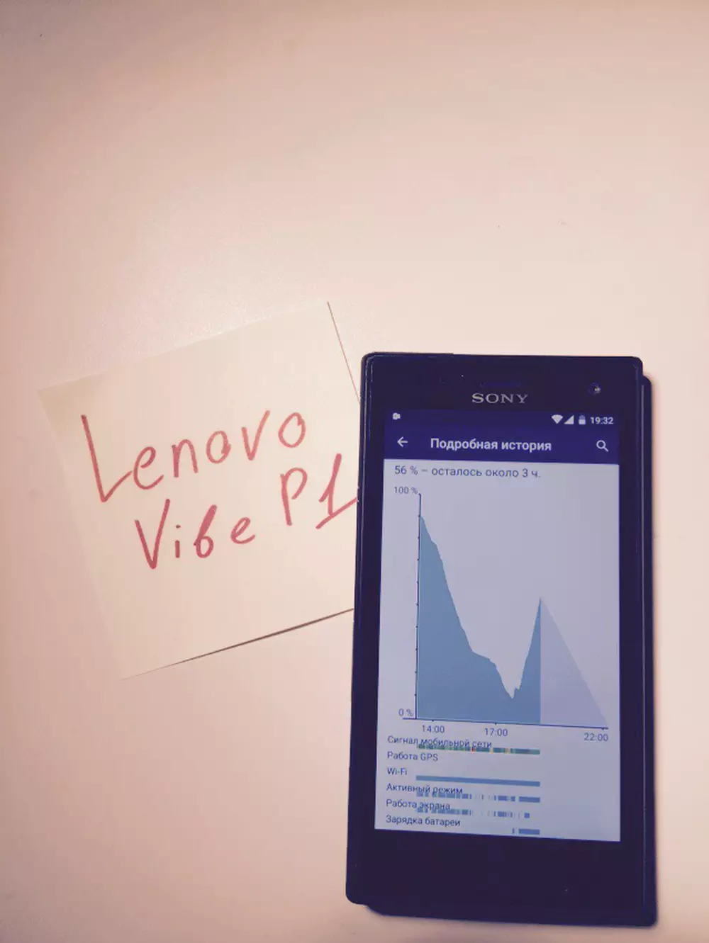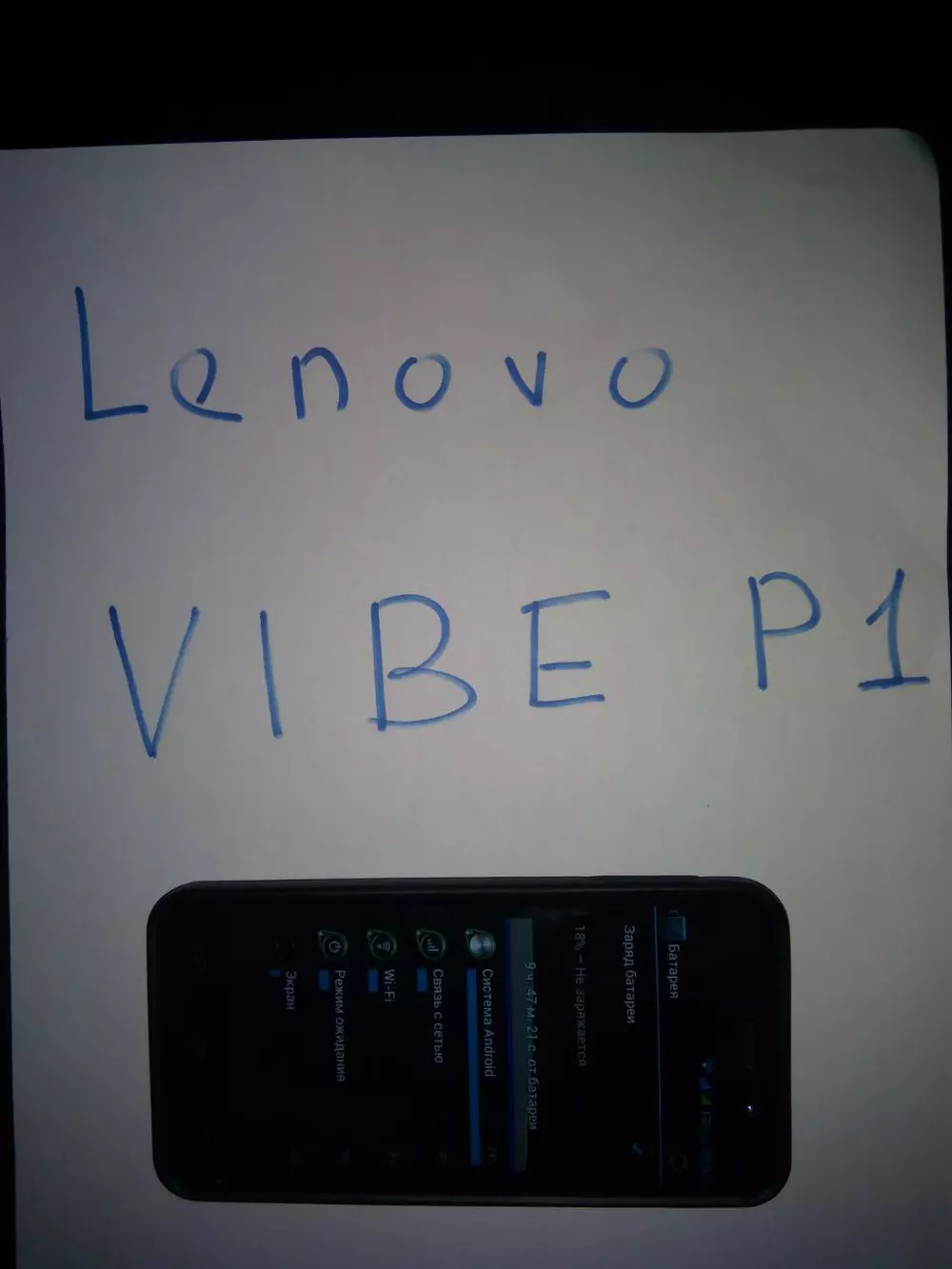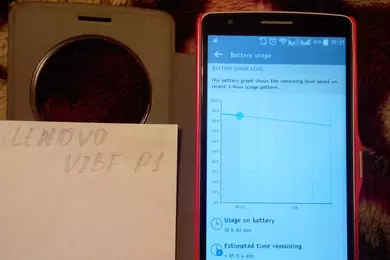 Уважаемые читатели! У вас есть возможность выиграть смартфон Lenovo Vibe P1, если вы примете участие в нашем конкурсе и сделаете снимок своего смартфона в режиме демонстрации графика разрядки аккумулятора вместе с надписью «Lenovo VIBE P1», сделанной любым удобным способом, кроме графического редактора — примеры таких снимков ниже.