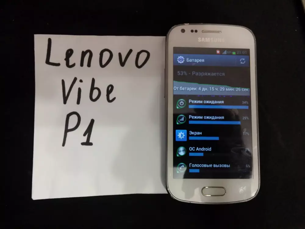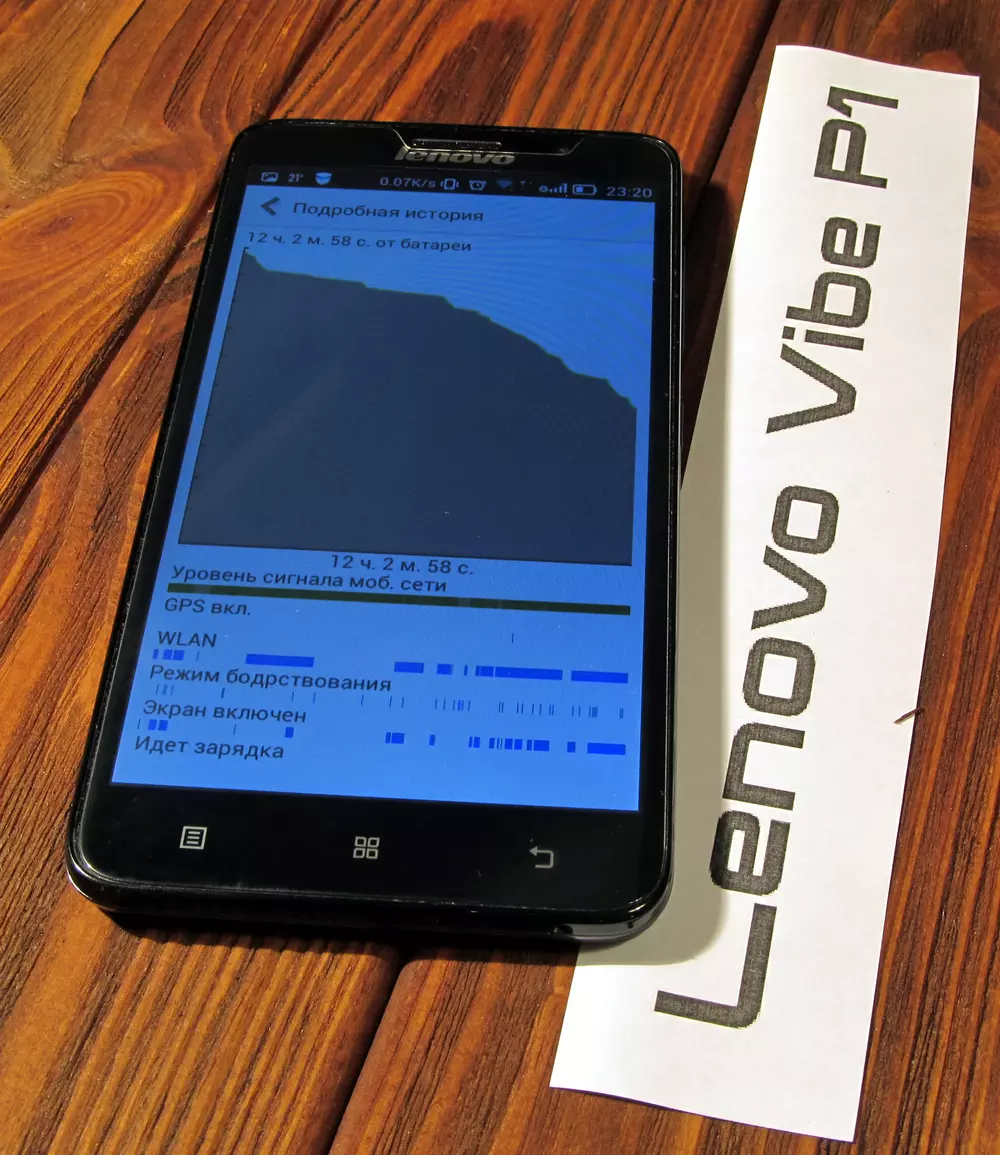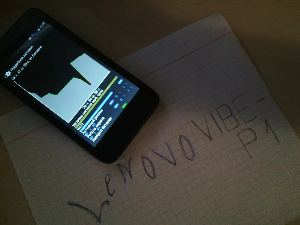 Уважаемые читатели! У вас есть возможность выиграть смартфон Lenovo Vibe P1, если вы примете участие в нашем конкурсе и сделаете снимок своего смартфона в режиме демонстрации графика разрядки аккумулятора вместе с надписью «Lenovo VIBE P1», сделанной любым удобным способом, кроме графического редактора — примеры таких снимков ниже.