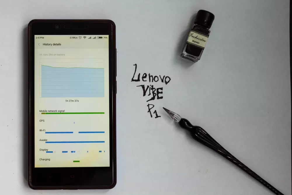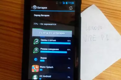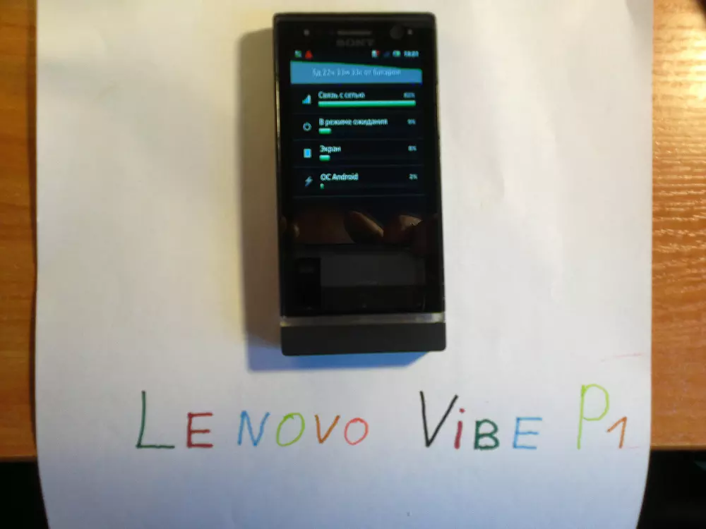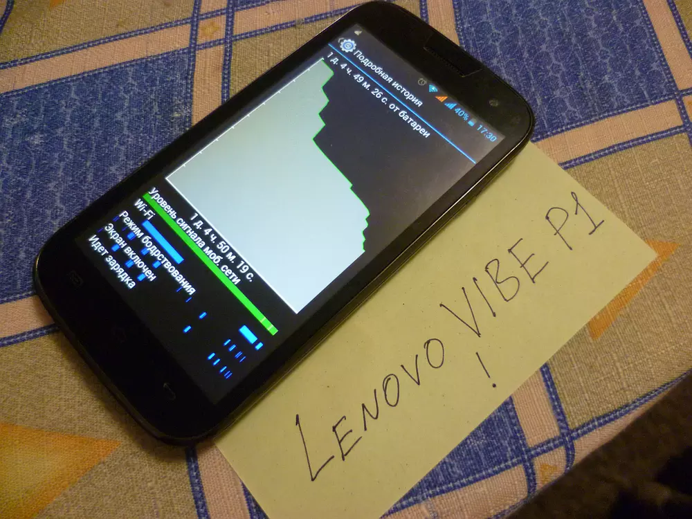 Уважаемые читатели! У вас есть возможность выиграть смартфон Lenovo Vibe P1, если вы примете участие в нашем конкурсе и сделаете снимок своего смартфона в режиме демонстрации графика разрядки аккумулятора вместе с надписью «Lenovo VIBE P1», сделанной любым удобным способом, кроме графического редактора — примеры таких снимков ниже.