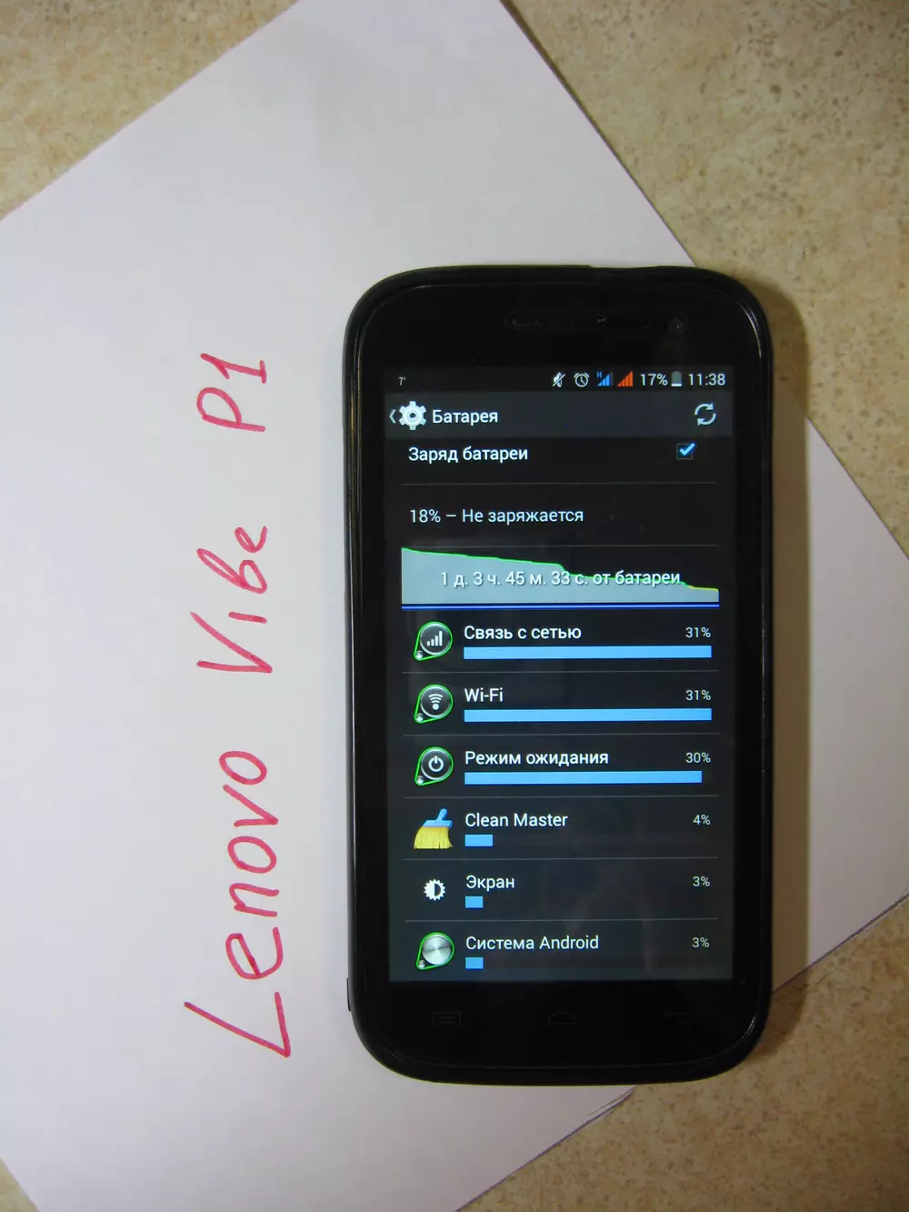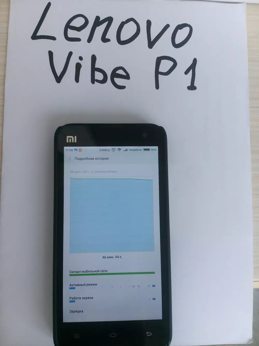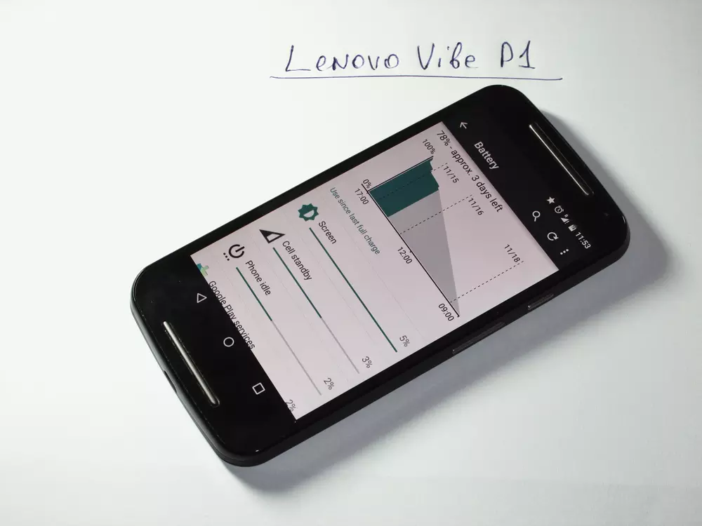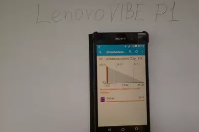 Уважаемые читатели! У вас есть возможность выиграть смартфон Lenovo Vibe P1, если вы примете участие в нашем конкурсе и сделаете снимок своего смартфона в режиме демонстрации графика разрядки аккумулятора вместе с надписью «Lenovo VIBE P1», сделанной любым удобным способом, кроме графического редактора — примеры таких снимков ниже.