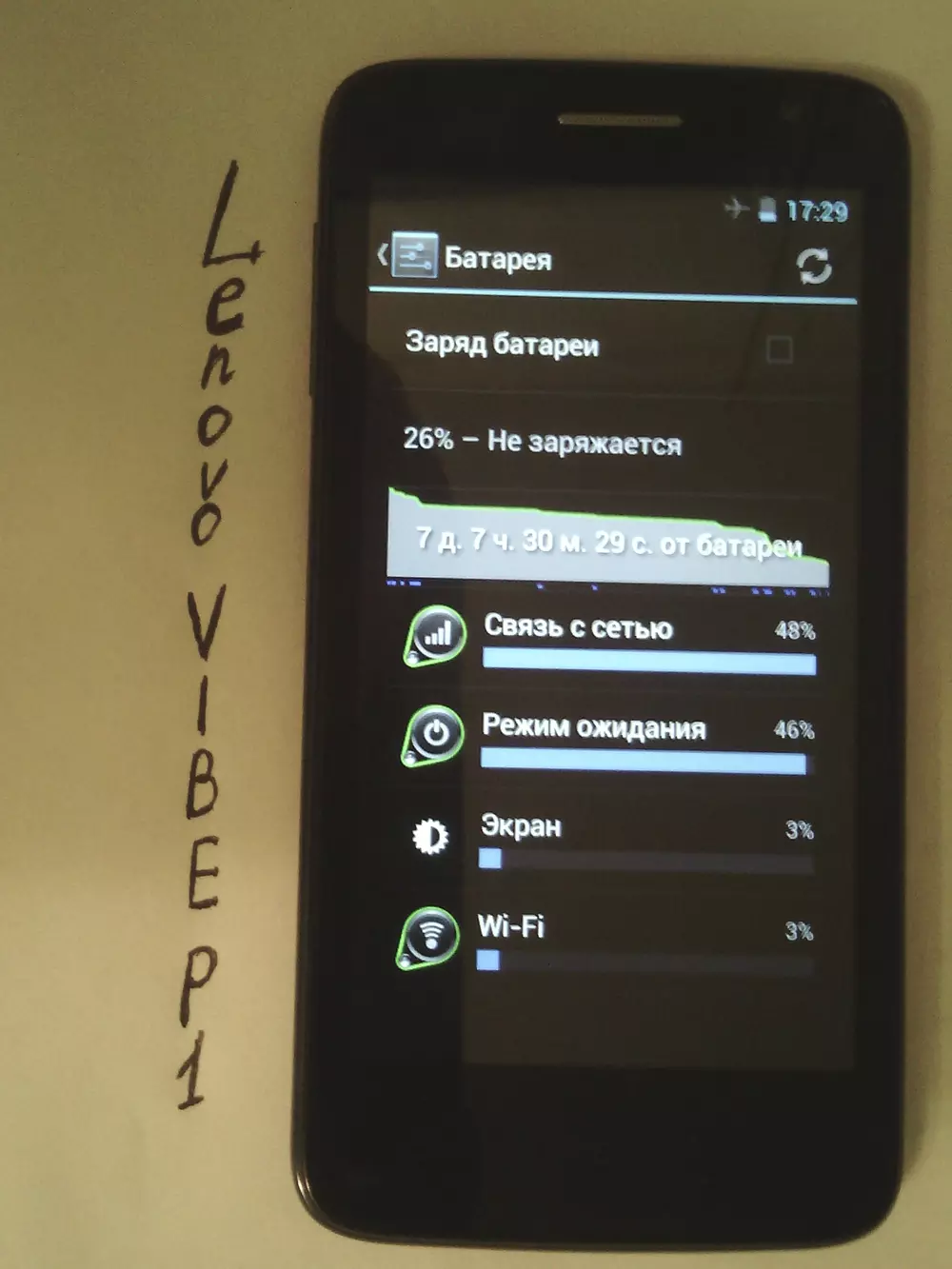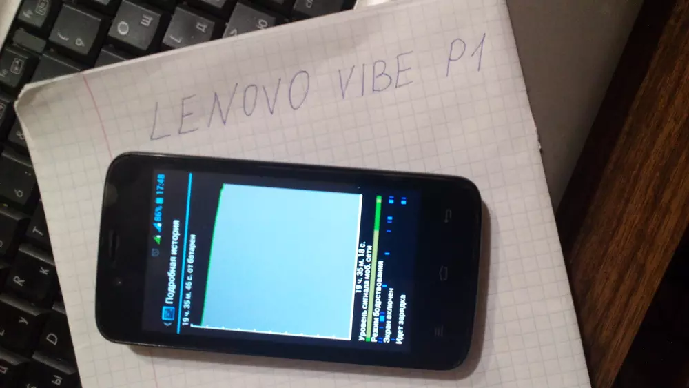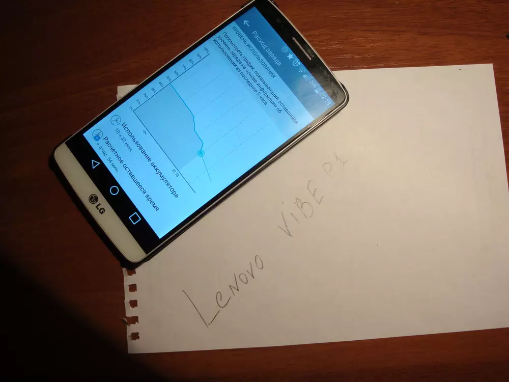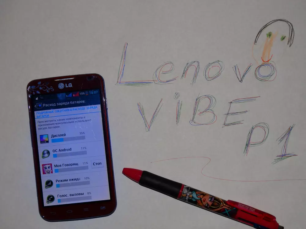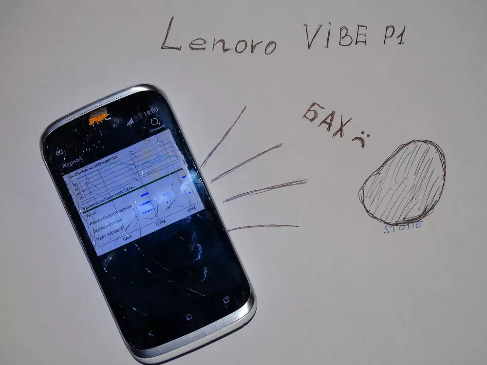 Уважаемые читатели! У вас есть возможность выиграть смартфон Lenovo Vibe P1, если вы примете участие в нашем конкурсе и сделаете снимок своего смартфона в режиме демонстрации графика разрядки аккумулятора вместе с надписью «Lenovo VIBE P1», сделанной любым удобным способом, кроме графического редактора — примеры таких снимков ниже.