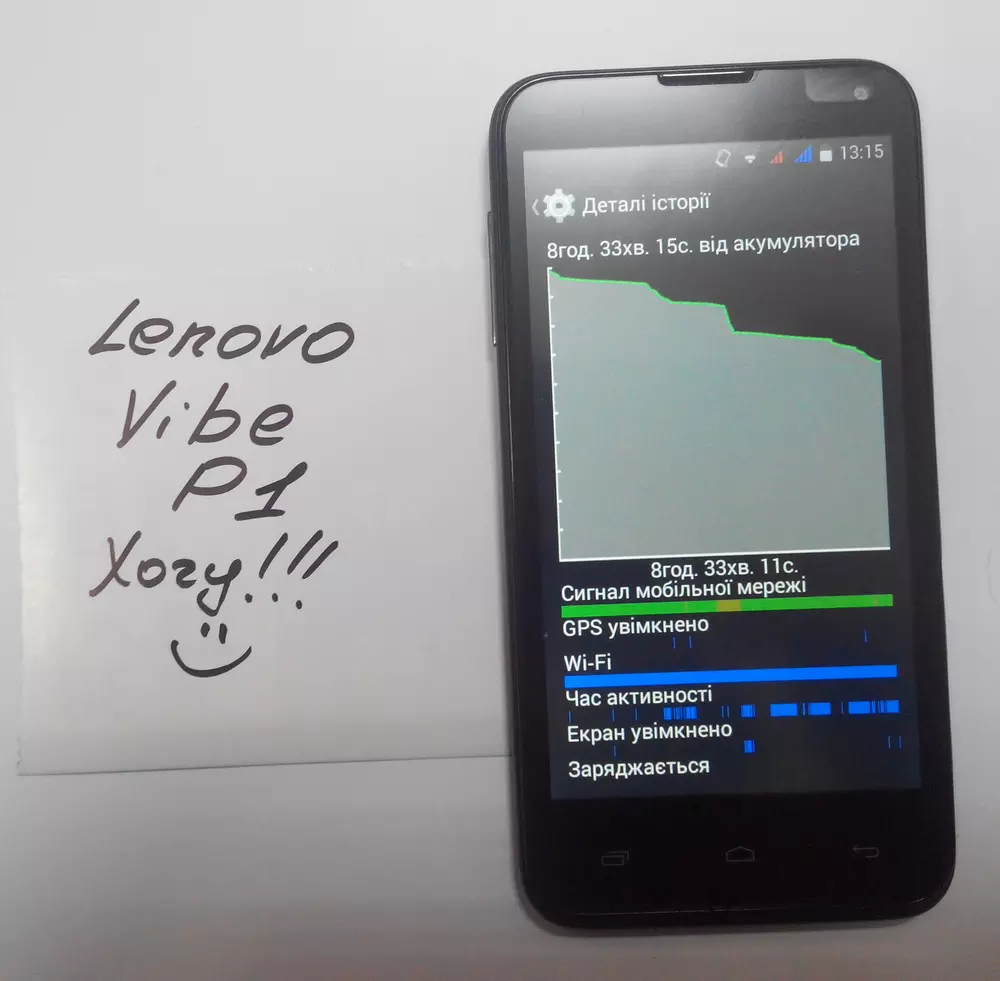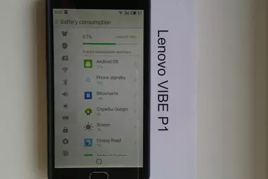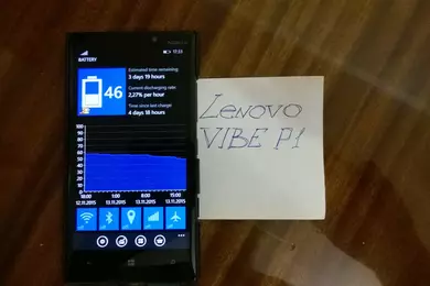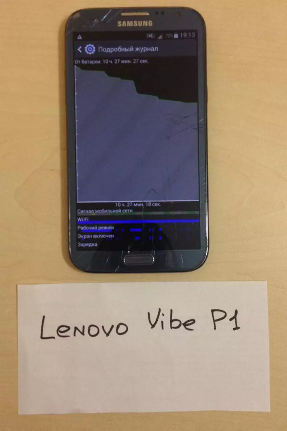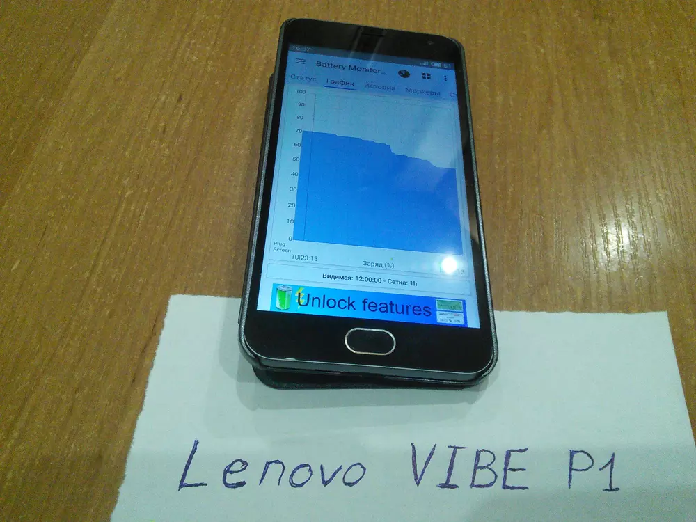 Уважаемые читатели! У вас есть возможность выиграть смартфон Lenovo Vibe P1, если вы примете участие в нашем конкурсе и сделаете снимок своего смартфона в режиме демонстрации графика разрядки аккумулятора вместе с надписью «Lenovo VIBE P1», сделанной любым удобным способом, кроме графического редактора — примеры таких снимков ниже.