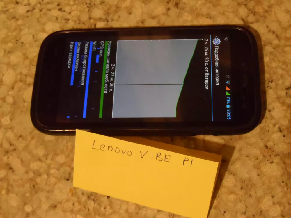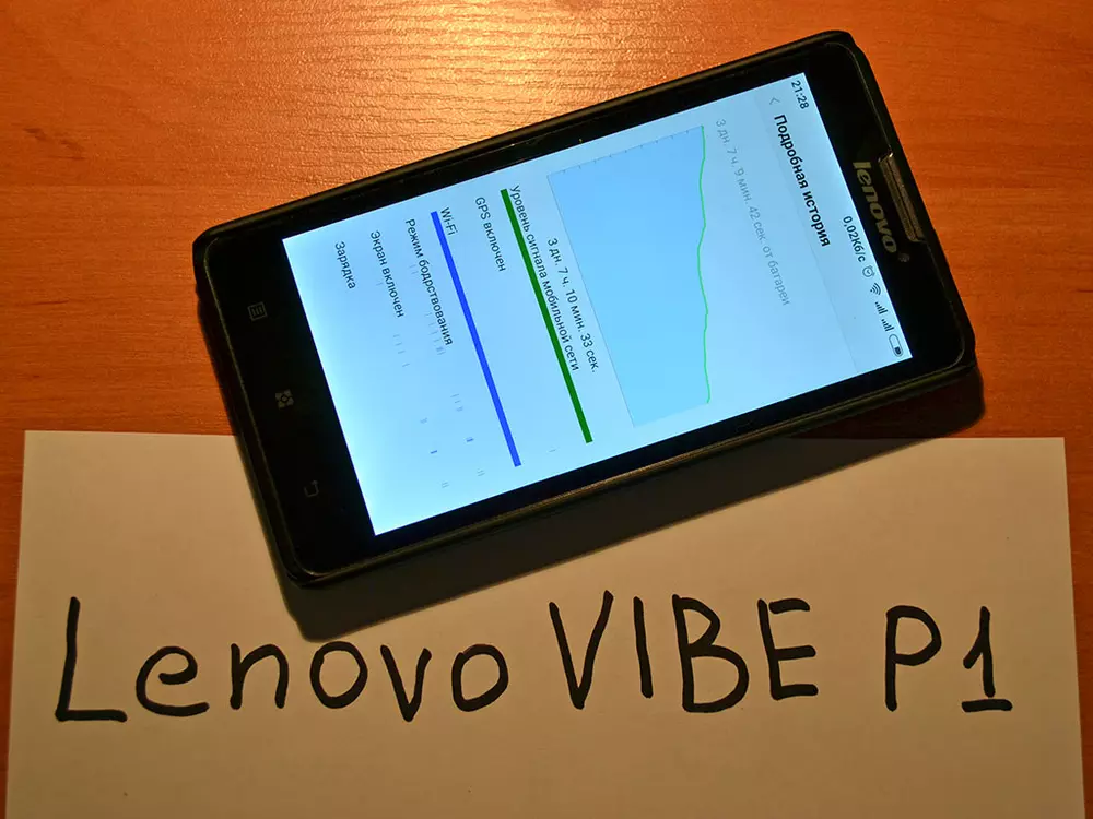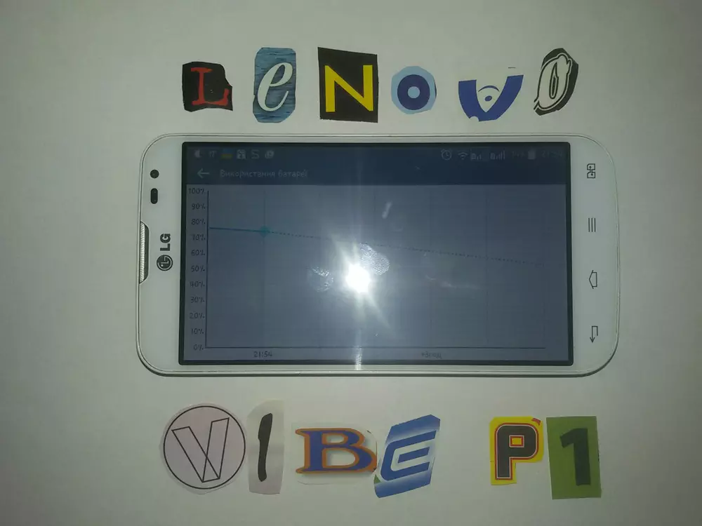 Уважаемые читатели! У вас есть возможность выиграть смартфон Lenovo Vibe P1, если вы примете участие в нашем конкурсе и сделаете снимок своего смартфона в режиме демонстрации графика разрядки аккумулятора вместе с надписью «Lenovo VIBE P1», сделанной любым удобным способом, кроме графического редактора — примеры таких снимков ниже.