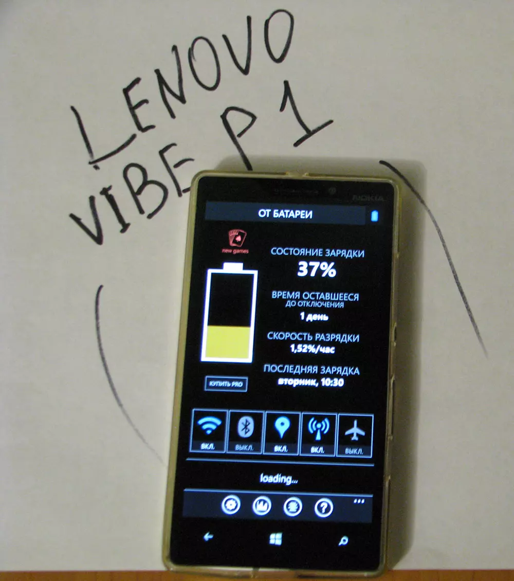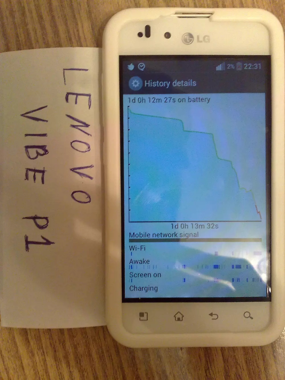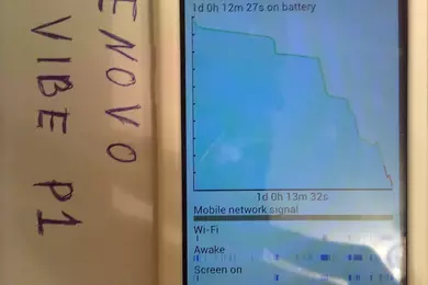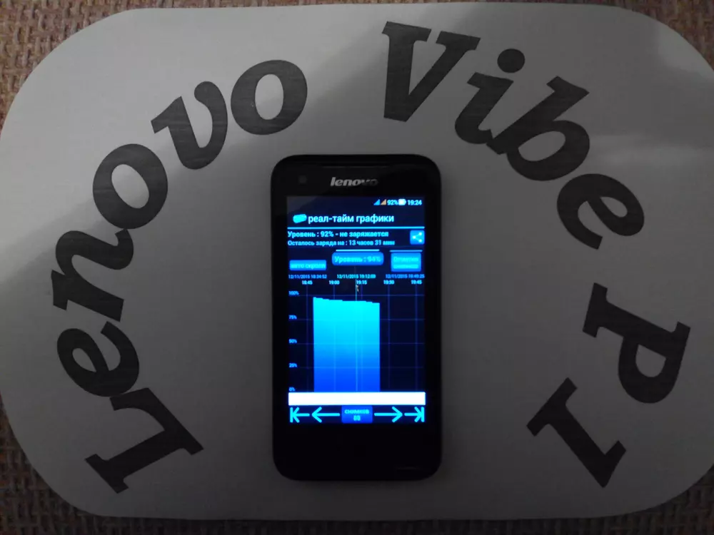 Уважаемые читатели! У вас есть возможность выиграть смартфон Lenovo Vibe P1, если вы примете участие в нашем конкурсе и сделаете снимок своего смартфона в режиме демонстрации графика разрядки аккумулятора вместе с надписью «Lenovo VIBE P1», сделанной любым удобным способом, кроме графического редактора — примеры таких снимков ниже.