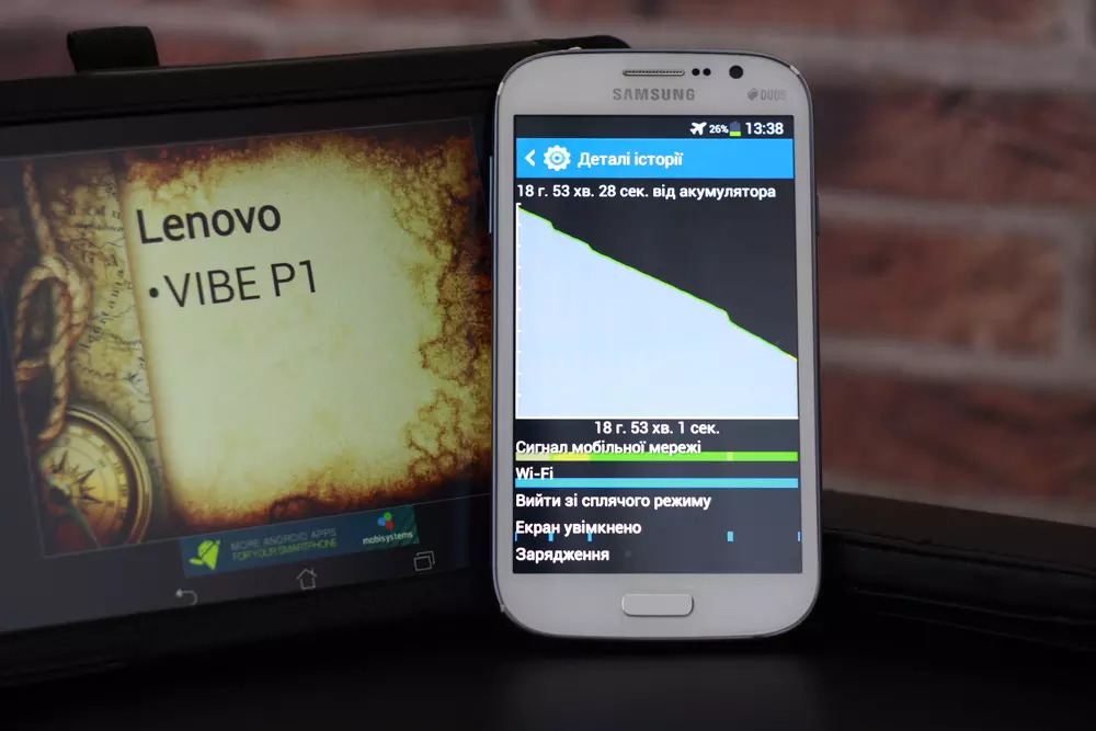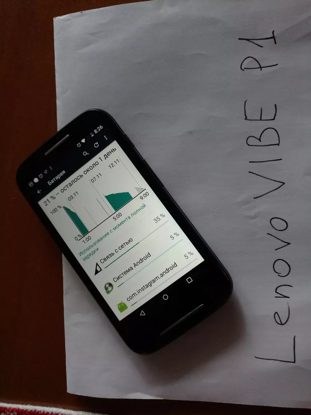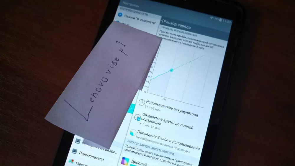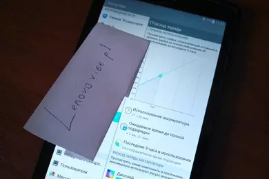 Уважаемые читатели! У вас есть возможность выиграть смартфон Lenovo Vibe P1, если вы примете участие в нашем конкурсе и сделаете снимок своего смартфона в режиме демонстрации графика разрядки аккумулятора вместе с надписью «Lenovo VIBE P1», сделанной любым удобным способом, кроме графического редактора — примеры таких снимков ниже.