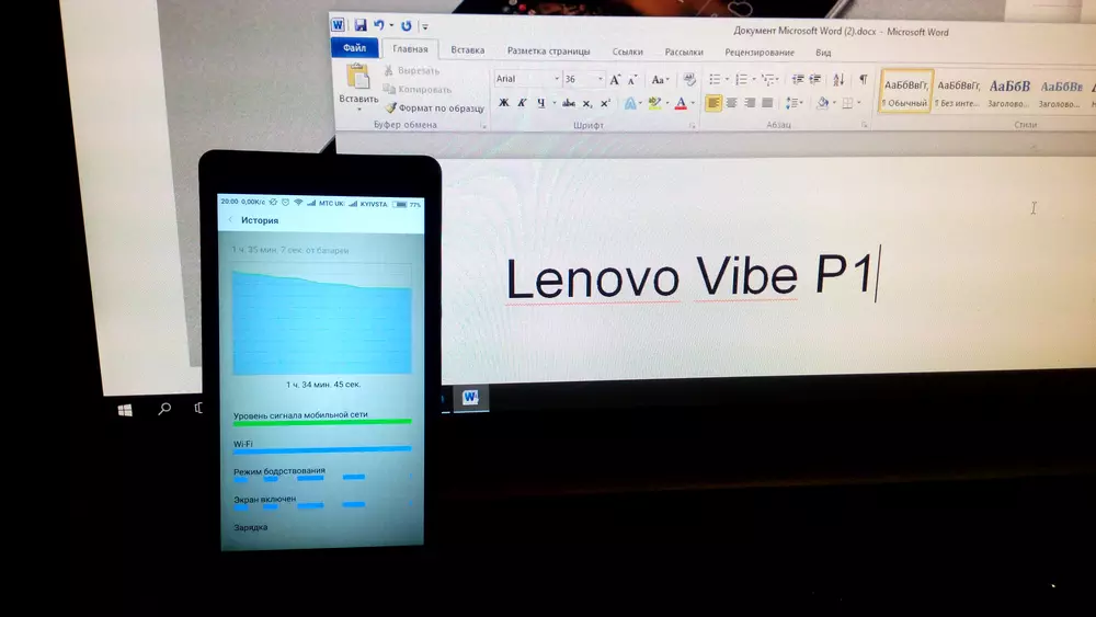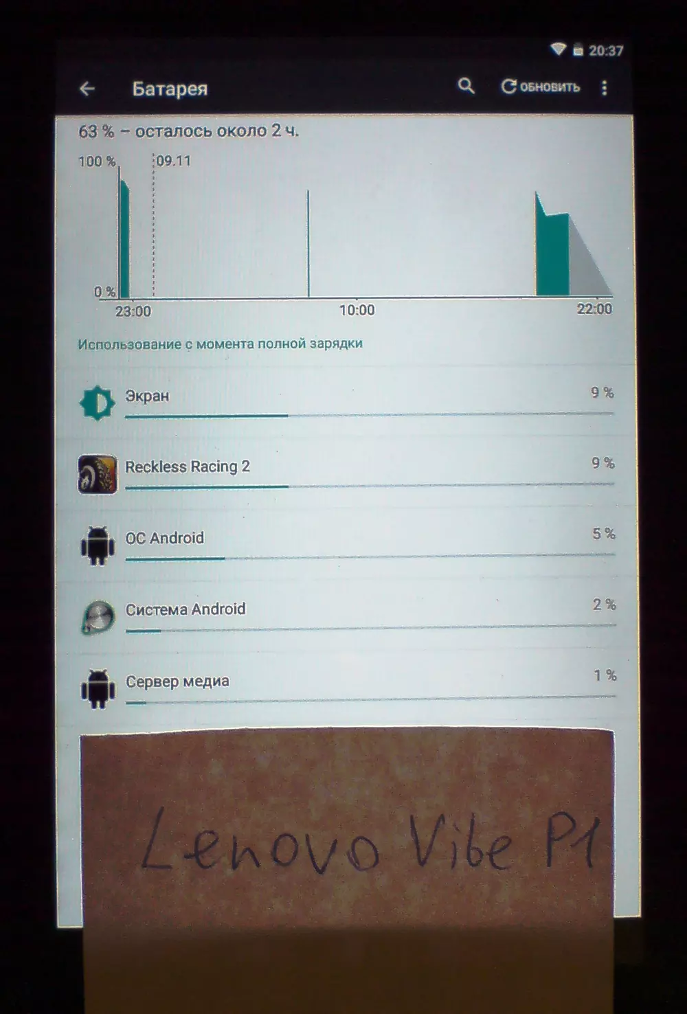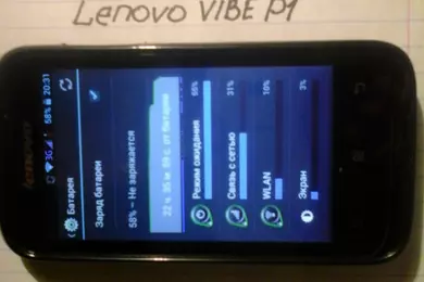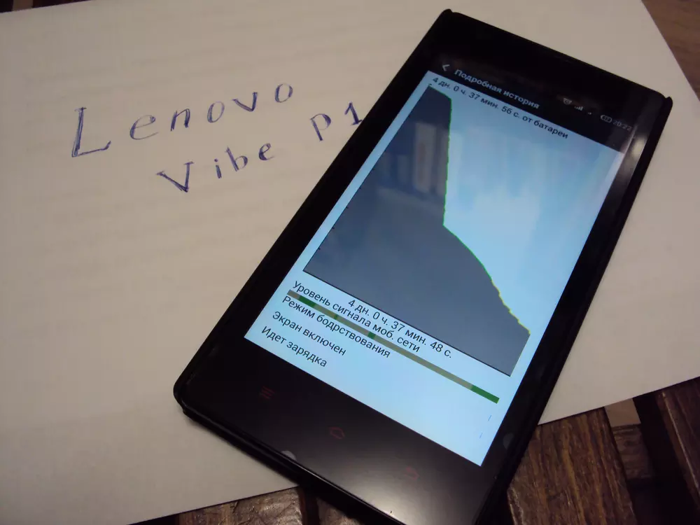 Уважаемые читатели! У вас есть возможность выиграть смартфон Lenovo Vibe P1, если вы примете участие в нашем конкурсе и сделаете снимок своего смартфона в режиме демонстрации графика разрядки аккумулятора вместе с надписью «Lenovo VIBE P1», сделанной любым удобным способом, кроме графического редактора — примеры таких снимков ниже.