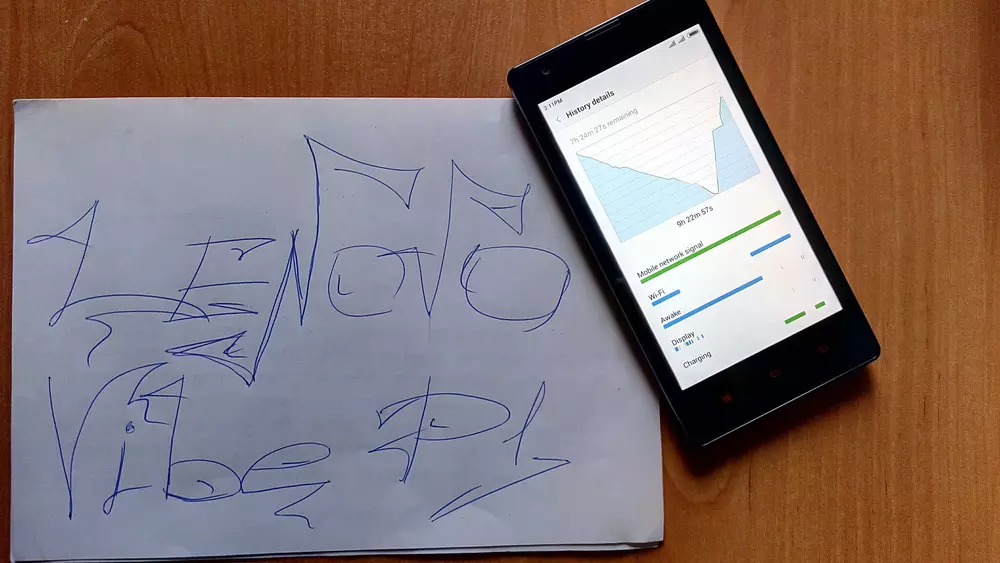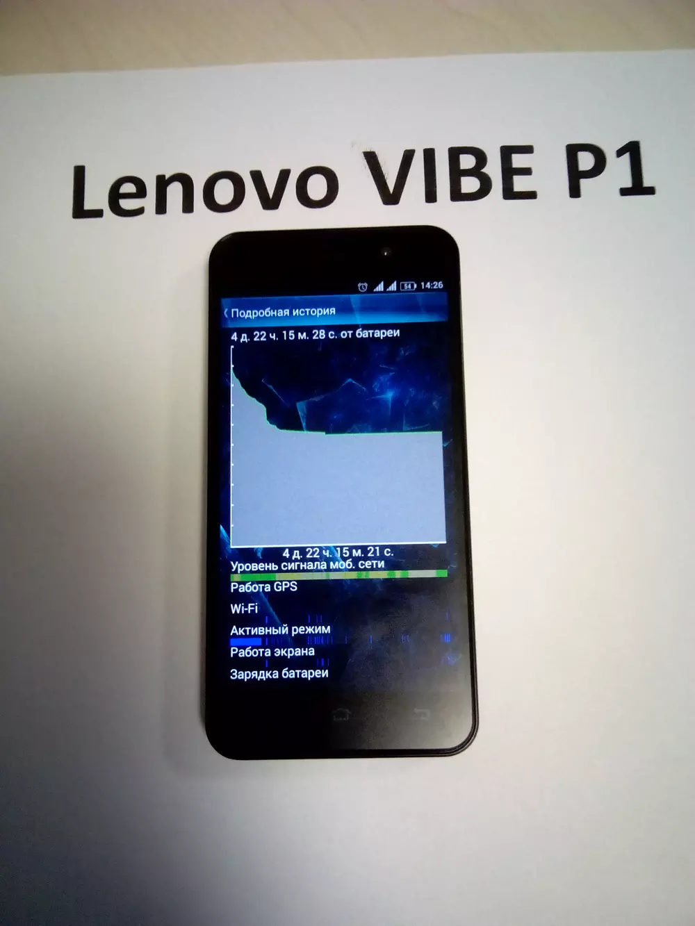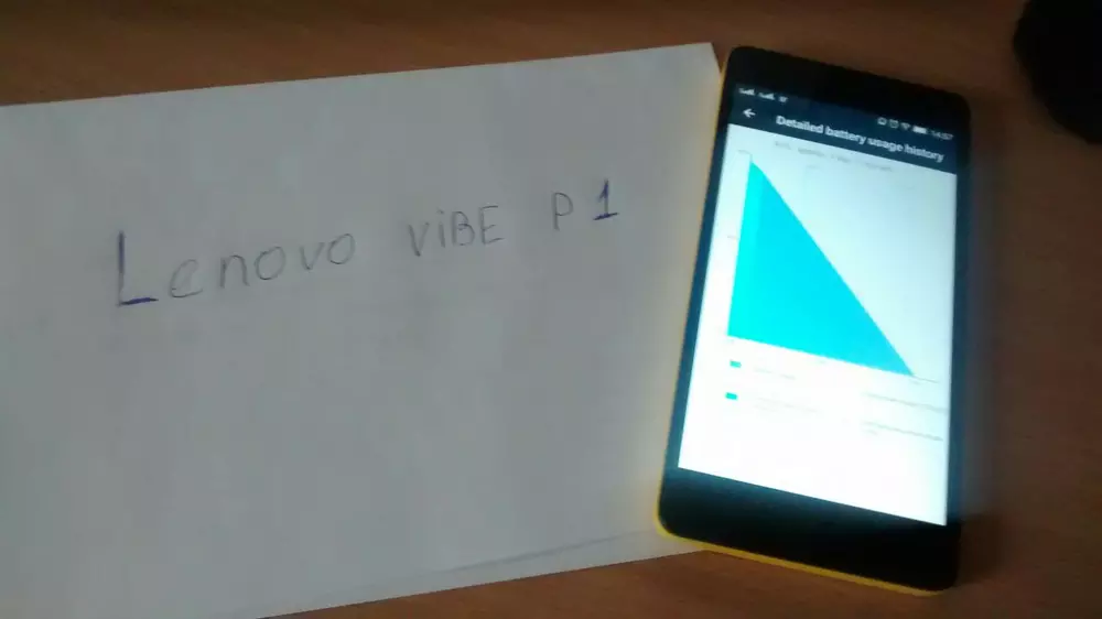 Уважаемые читатели! У вас есть возможность выиграть смартфон Lenovo Vibe P1, если вы примете участие в нашем конкурсе и сделаете снимок своего смартфона в режиме демонстрации графика разрядки аккумулятора вместе с надписью «Lenovo VIBE P1», сделанной любым удобным способом, кроме графического редактора — примеры таких снимков ниже.