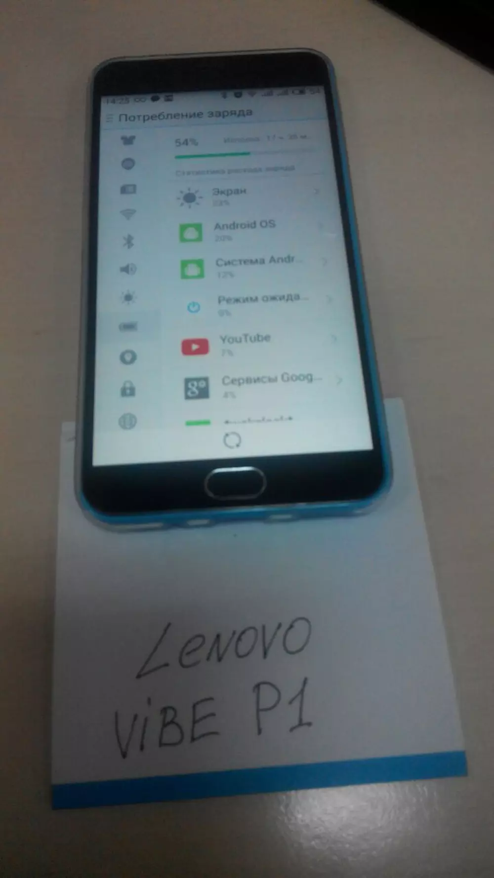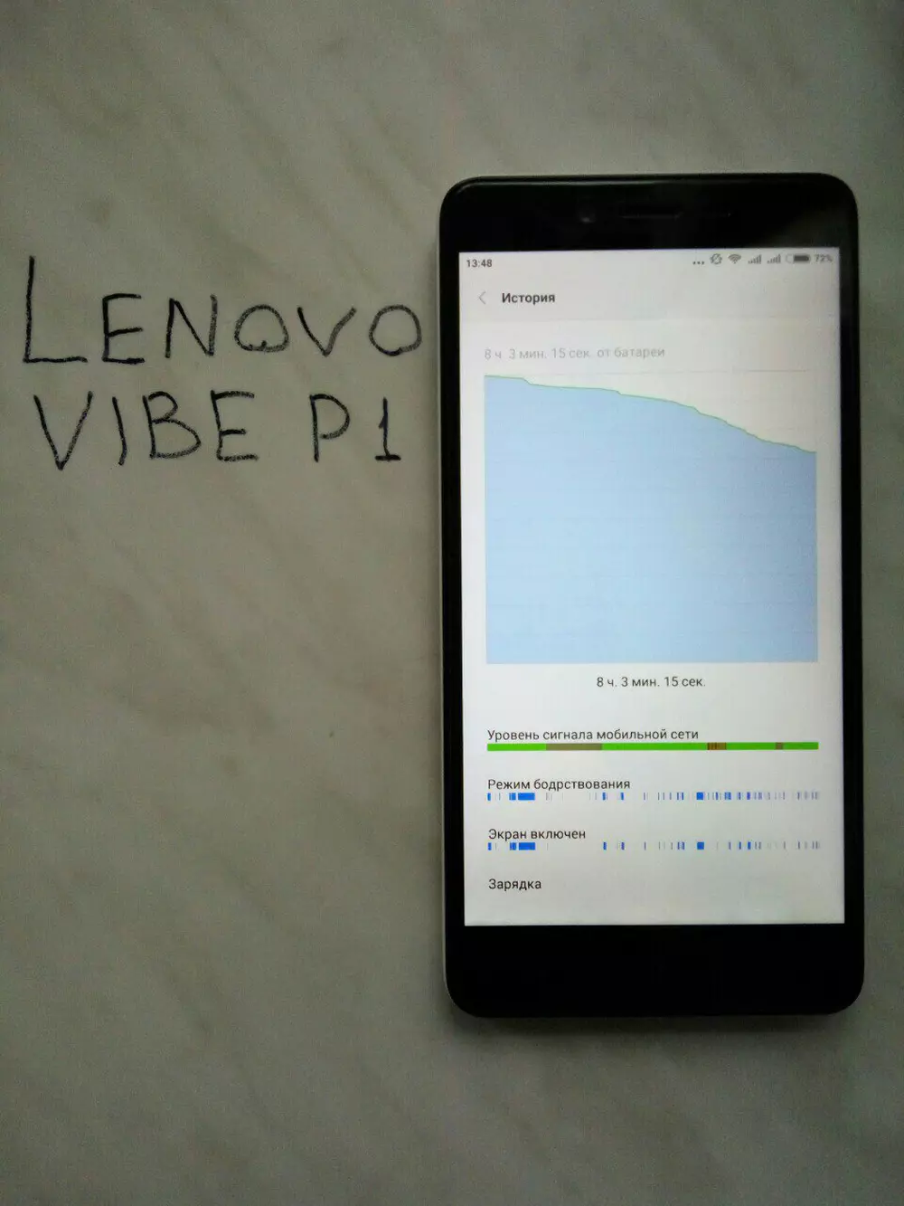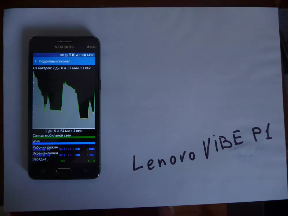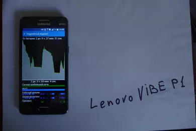 Уважаемые читатели! У вас есть возможность выиграть смартфон Lenovo Vibe P1, если вы примете участие в нашем конкурсе и сделаете снимок своего смартфона в режиме демонстрации графика разрядки аккумулятора вместе с надписью «Lenovo VIBE P1», сделанной любым удобным способом, кроме графического редактора — примеры таких снимков ниже.