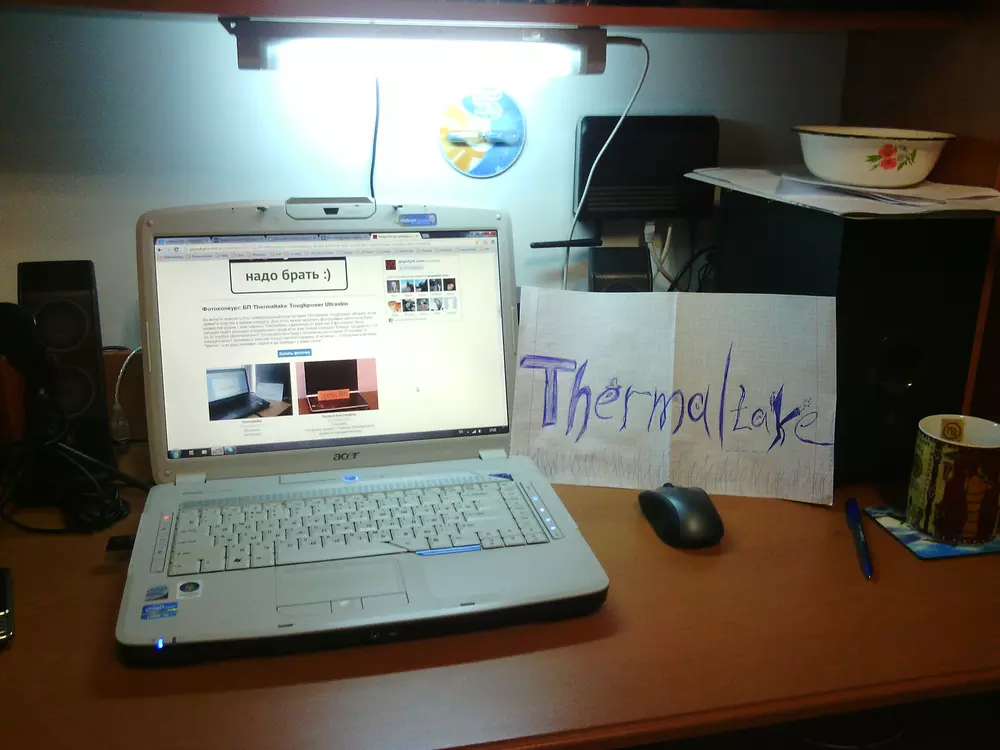 Вы можете выиграть этот универсальный блок питания Thermaltake Toughpower Ultraslim, если примете участие в нашем конкурсе. Для этого нужно загрузить фотографию своего ноутбука, разместив рядом с ним надпись Thermaltake, сделанную от руки (не в фотошопе). Блок питания будет разыгран в жеребьевке среди всех участников конкурса. Конкурс продлится с 19 по 25 ноября (включительно). Его результаты будут объявлены не позднее 27 ноября. В конкурсе могут принимать участие только жители Украины. И не могут - сотрудники компании "Магнет" и их родственники. Удачи и да пребудет с вами Сила!