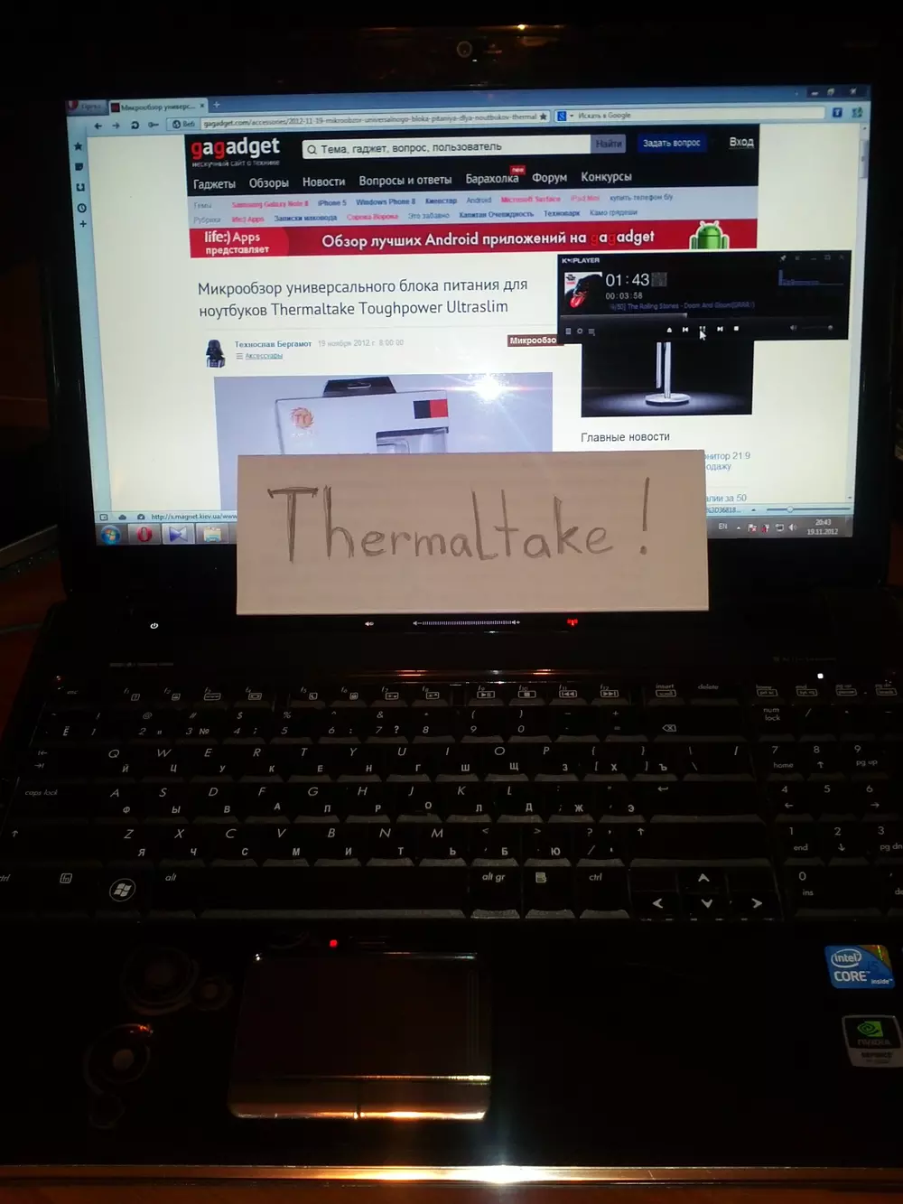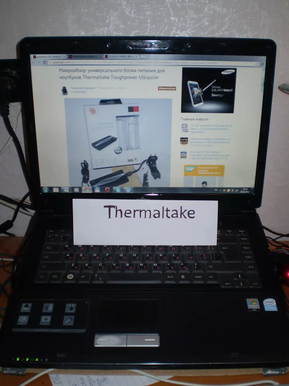 Вы можете выиграть этот универсальный блок питания Thermaltake Toughpower Ultraslim, если примете участие в нашем конкурсе. Для этого нужно загрузить фотографию своего ноутбука, разместив рядом с ним надпись Thermaltake, сделанную от руки (не в фотошопе). Блок питания будет разыгран в жеребьевке среди всех участников конкурса. Конкурс продлится с 19 по 25 ноября (включительно). Его результаты будут объявлены не позднее 27 ноября. В конкурсе могут принимать участие только жители Украины. И не могут - сотрудники компании "Магнет" и их родственники. Удачи и да пребудет с вами Сила!