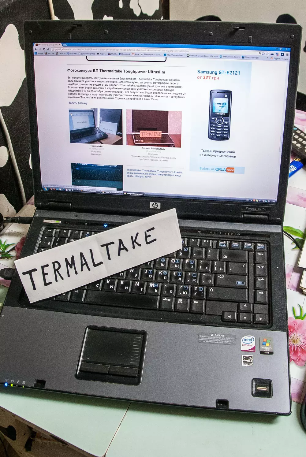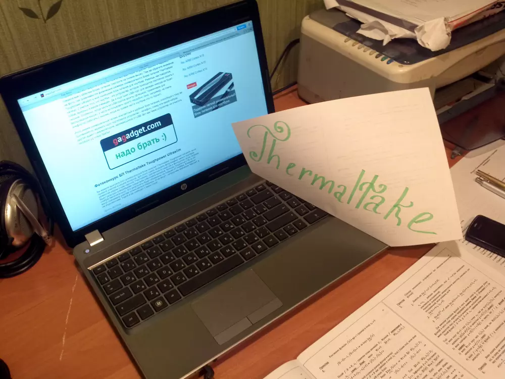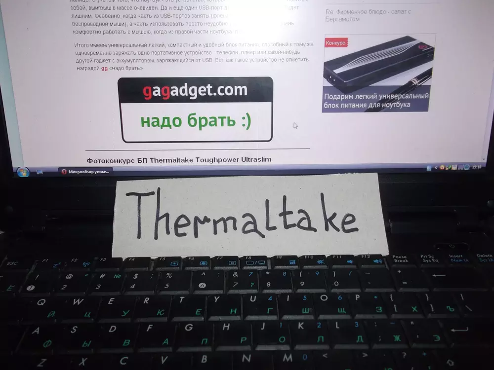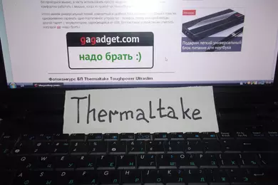 Вы можете выиграть этот универсальный блок питания Thermaltake Toughpower Ultraslim, если примете участие в нашем конкурсе. Для этого нужно загрузить фотографию своего ноутбука, разместив рядом с ним надпись Thermaltake, сделанную от руки (не в фотошопе). Блок питания будет разыгран в жеребьевке среди всех участников конкурса. Конкурс продлится с 19 по 25 ноября (включительно). Его результаты будут объявлены не позднее 27 ноября. В конкурсе могут принимать участие только жители Украины. И не могут - сотрудники компании "Магнет" и их родственники. Удачи и да пребудет с вами Сила!