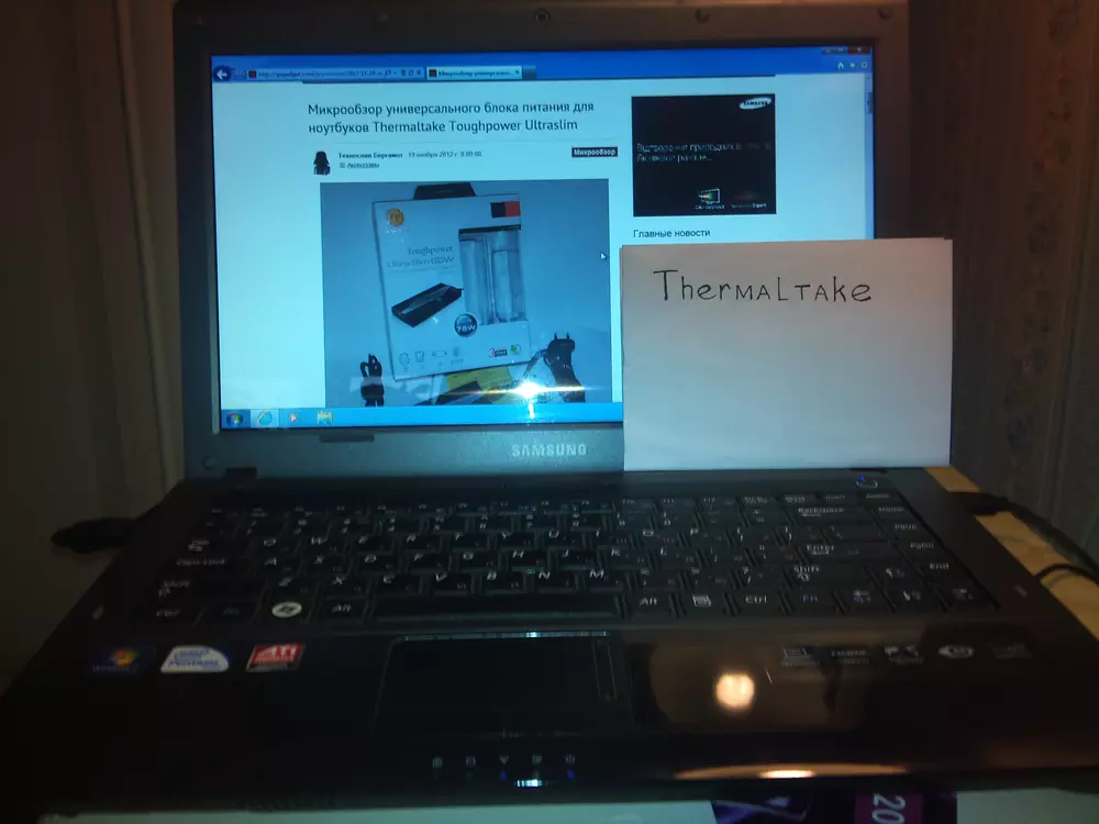 Вы можете выиграть этот универсальный блок питания Thermaltake Toughpower Ultraslim, если примете участие в нашем конкурсе. Для этого нужно загрузить фотографию своего ноутбука, разместив рядом с ним надпись Thermaltake, сделанную от руки (не в фотошопе). Блок питания будет разыгран в жеребьевке среди всех участников конкурса. Конкурс продлится с 19 по 25 ноября (включительно). Его результаты будут объявлены не позднее 27 ноября. В конкурсе могут принимать участие только жители Украины. И не могут - сотрудники компании "Магнет" и их родственники. Удачи и да пребудет с вами Сила!