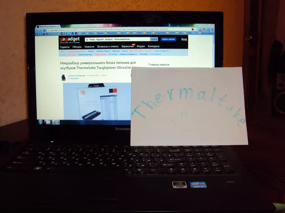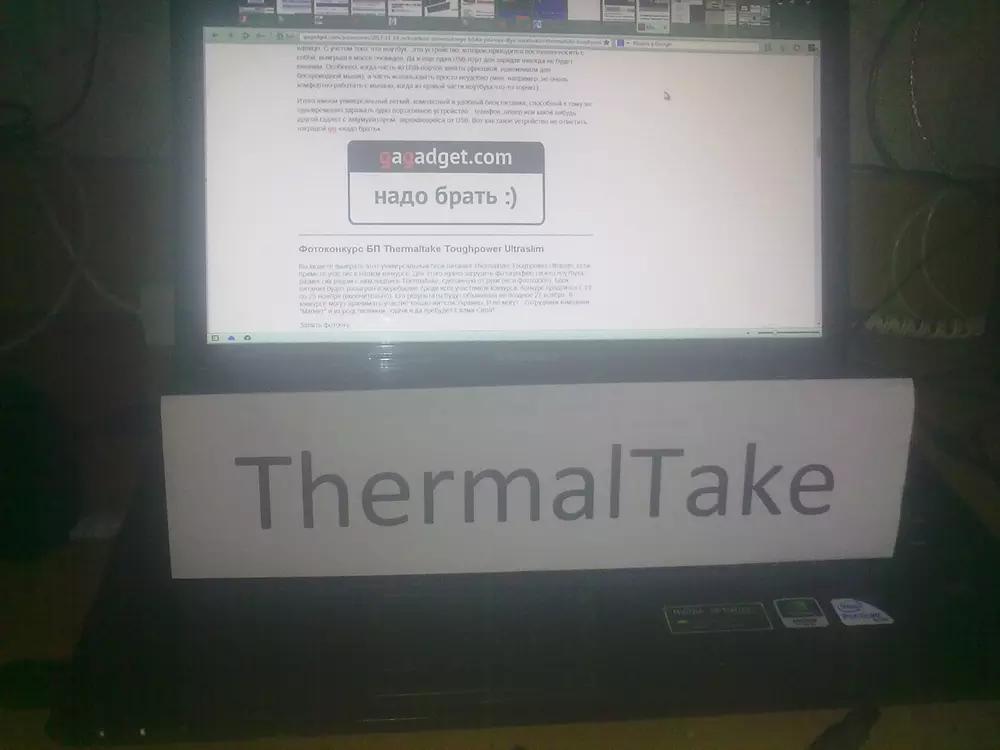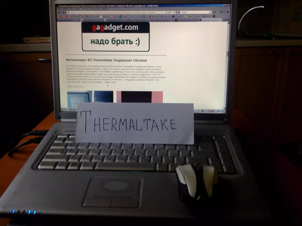 Вы можете выиграть этот универсальный блок питания Thermaltake Toughpower Ultraslim, если примете участие в нашем конкурсе. Для этого нужно загрузить фотографию своего ноутбука, разместив рядом с ним надпись Thermaltake, сделанную от руки (не в фотошопе). Блок питания будет разыгран в жеребьевке среди всех участников конкурса. Конкурс продлится с 19 по 25 ноября (включительно). Его результаты будут объявлены не позднее 27 ноября. В конкурсе могут принимать участие только жители Украины. И не могут - сотрудники компании "Магнет" и их родственники. Удачи и да пребудет с вами Сила!