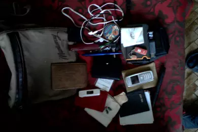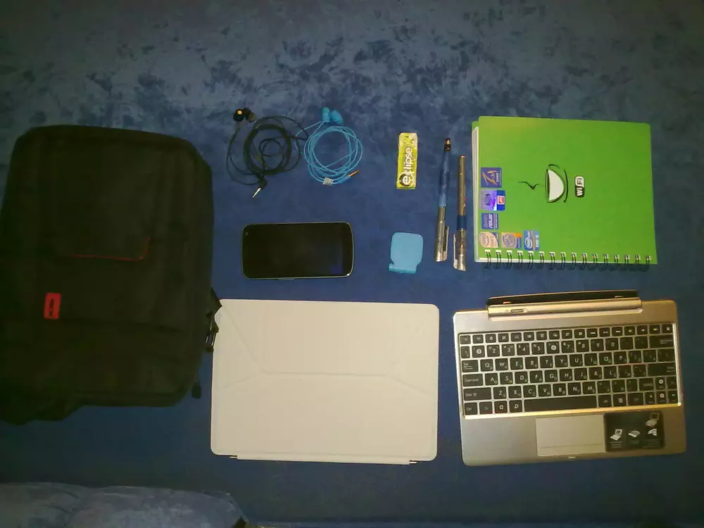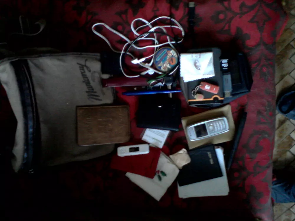 Вот моя сумка, в моем ежедневном беспорядке всего хватает. Здесь много чего, нетбук и зарядка для него, телефон, флешка на 16 гиг, винт, тестер, нож, штатив для фотика, парочка автономных зарядок, беспроводная мышка, наушник, дополнительная гибкая клава. И это все приходится таскать с собой