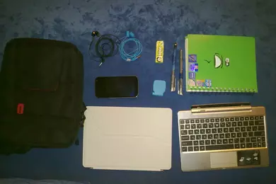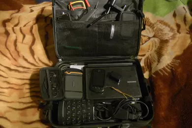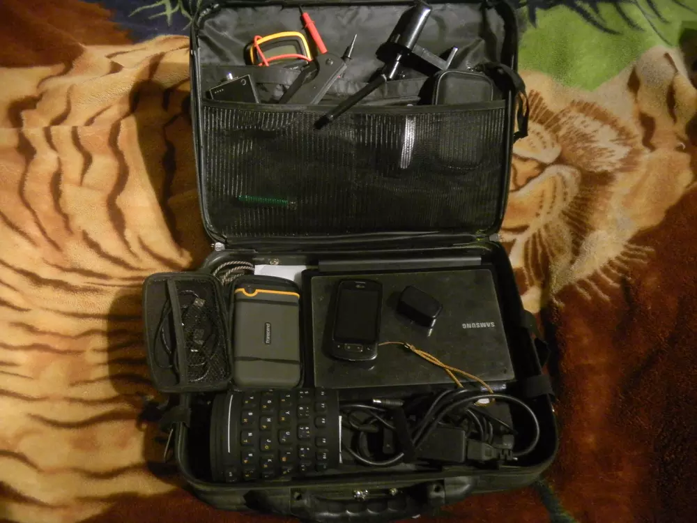 Работаю техником-настройщиком у местного интернет-провайдера, потому в сумке постоянно ношу уйму инструментов (обжимка, кусачки, плинторезы и т.п.), оборудования (свитчи, медиаконверторы, мультиметры и т.п.) и кабелей (как ГЕЗ так и ПВС) + ноутбук.