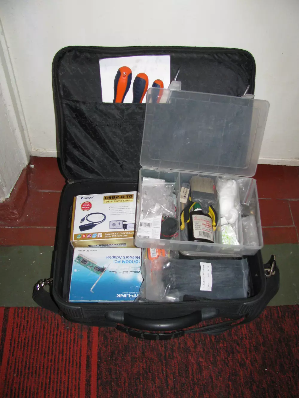 Сумка фирмы Bagland, содержимое почти всё что нужно для ремонта компьютеров и ноутбуков на месте!