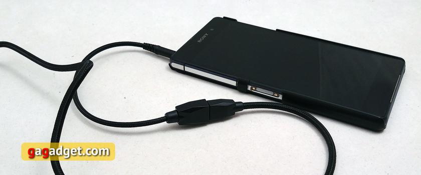 Кабель в тканевой оплётке, толстый, но при этом не слишком тяжёлый и очень мягкий податливый. Принимает нужную форму без проблем. Его длина — 2 метра, на конце — древний Mini-USB для подключения к USB-аудиокарте или переходнику на 3.5-мм разъём. Само по себе использование Mini-USB выглядит странновато, с другой стороны, это в данном случае не критично, ведь кабель несъёмный и самому его так просто не получится заменить, да и купить отдельно такую же USB-аудиокарту будет сложновато. Таким образом, получаем своеобразный почти проприетарный вариант: