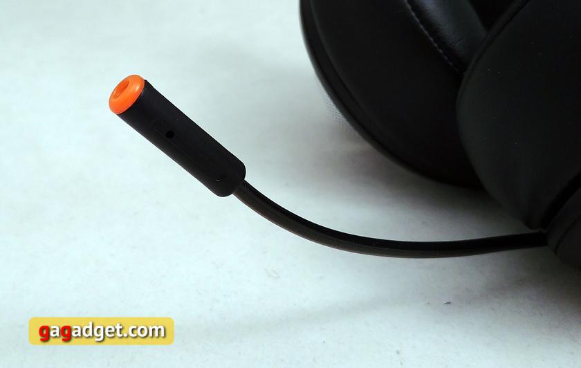 Гарнитура большая и увесистая: 360 г, несмотря на это, она удобная. В том числе и из-за конструкции с двойным оголовьем: вес удачно распределяется и можно часами её не снимать и не чувствовать дискомфорта. Прижимная сила оптимальна: гарнитура не давит, в то же время и не слетает с головы. Амбушюры очень комфортные, уши полностью помещаются внутрь и не потеют при длительной игре. Спустя 3 часа (а иногда и больше) не снимая гарнитуры, никаких неприятных ощущений не возникло. Возможно летом будет по-другому, но в текущих погодных условиях судить сложно. Микрофон конструктивно сделан правильно, мне такая конструкция кажется оптимальной. Нужен микрофон — вытащил из левой чашки и установил в нужное положение. Не нужен — спрятал. Очень интересное решение — крутящиеся металлические кольца на левой и правой чашке: слева — двухпозиционное для включения/выключения микрофона, справа — плавная регулировка громкости. Оба колеса в меру тугие для предотвращения случайного вращения. Мне такой вариант управления показался более очевидным и удобным, чем пульт ДУ на кабеле: