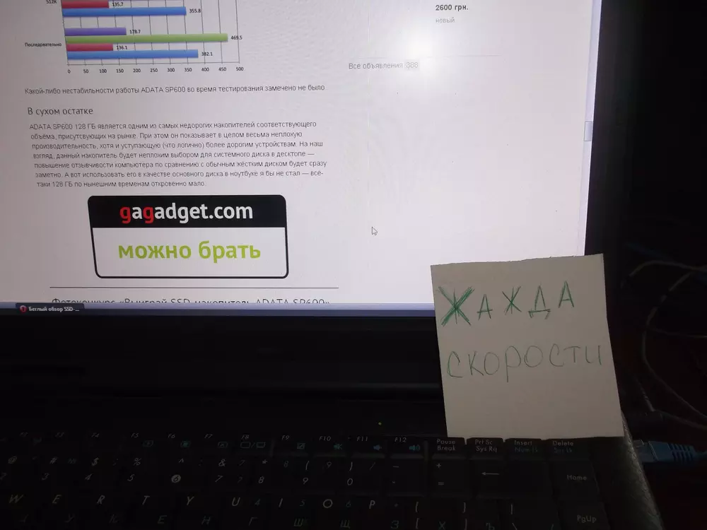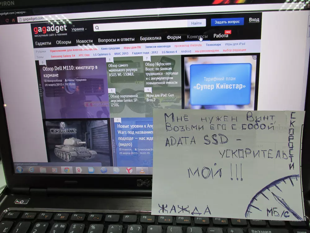 Вы можете выиграть SSD-накопитель ADATA SP600 и тем самым значительно повысить отзывчивость вашего компьютера. Для этого отправьте на конкурс фотографию, изображающую ваш системный блок или ноутбук. В кадре обязательно должна присутствовать надпись «Жажда скорости», выполненная от руки. В конкурсе могут принимать участие только резиденты Украины, не являющиеся сотрудниками или родственниками сотрудников медиа-холдинга «Магнет». Конкурс проводится с 22 по 28 марта 2013 года включительно, итоги будут подведены не позднее 1 апреля.