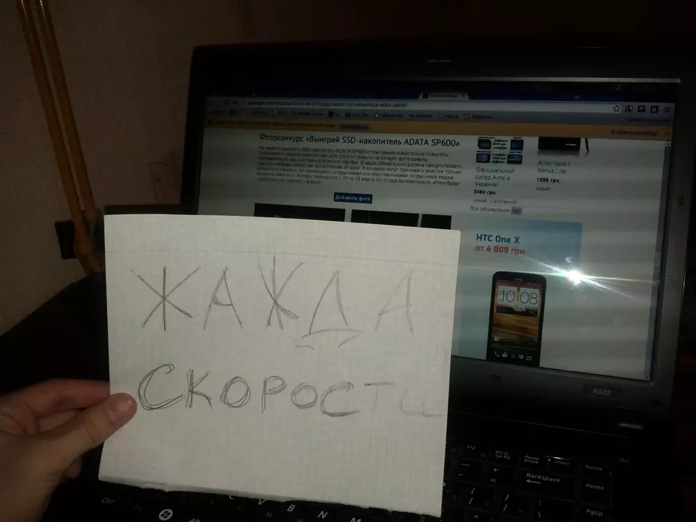 Вы можете выиграть SSD-накопитель ADATA SP600 и тем самым значительно повысить отзывчивость вашего компьютера. Для этого отправьте на конкурс фотографию, изображающую ваш системный блок или ноутбук. В кадре обязательно должна присутствовать надпись «Жажда скорости», выполненная от руки. В конкурсе могут принимать участие только резиденты Украины, не являющиеся сотрудниками или родственниками сотрудников медиа-холдинга «Магнет». Конкурс проводится с 22 по 28 марта 2013 года включительно, итоги будут подведены не позднее 1 апреля.