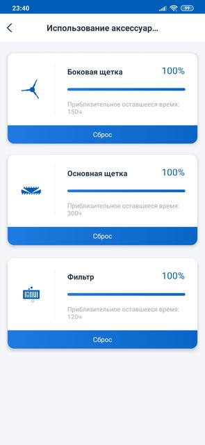 В инструкции есть рекомендации по замене расходников (щёток, фильтра, микрофибры), а в приложении можно отслеживать процесс их износа.