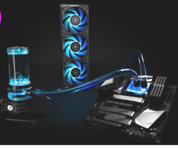 Reasons to buy: Optimum size 280mm, ceramic pump bearing, rotating pump cover with ARGB lighting, two 14cm threaded fans.