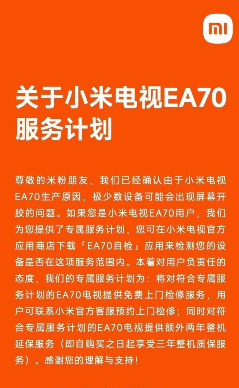 Recall that Xiaomi confirmed the problem with falling off TV panel Xiaomi Mi TV EA70, which were released in the second half of the first quarter of 2022. Users who encounter it will receive an extended warranty to 2 years and free repairs.