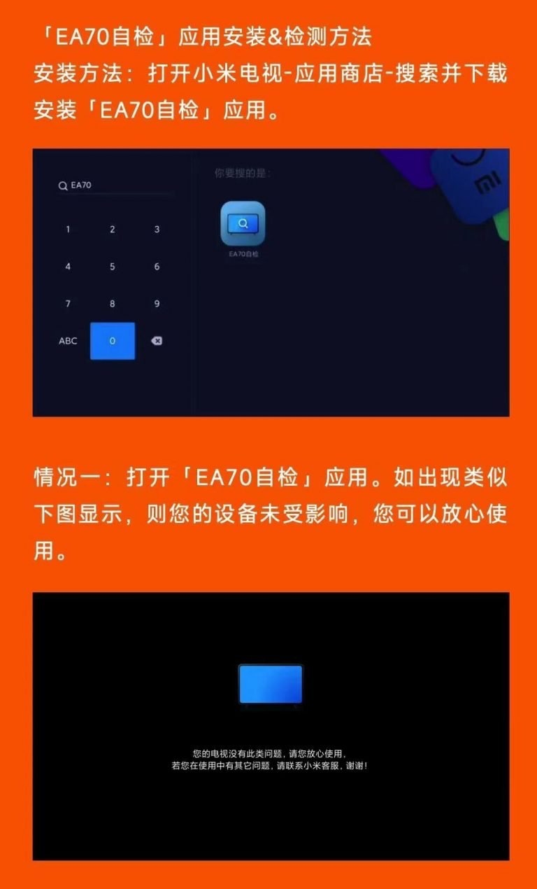The program is called EA70 Self Check. It allows you to find out if your TV can peel off the matrix from the device case. If yes, the application will notify you and recommend you contact the company's service center. So far, the program is only available to users in China.