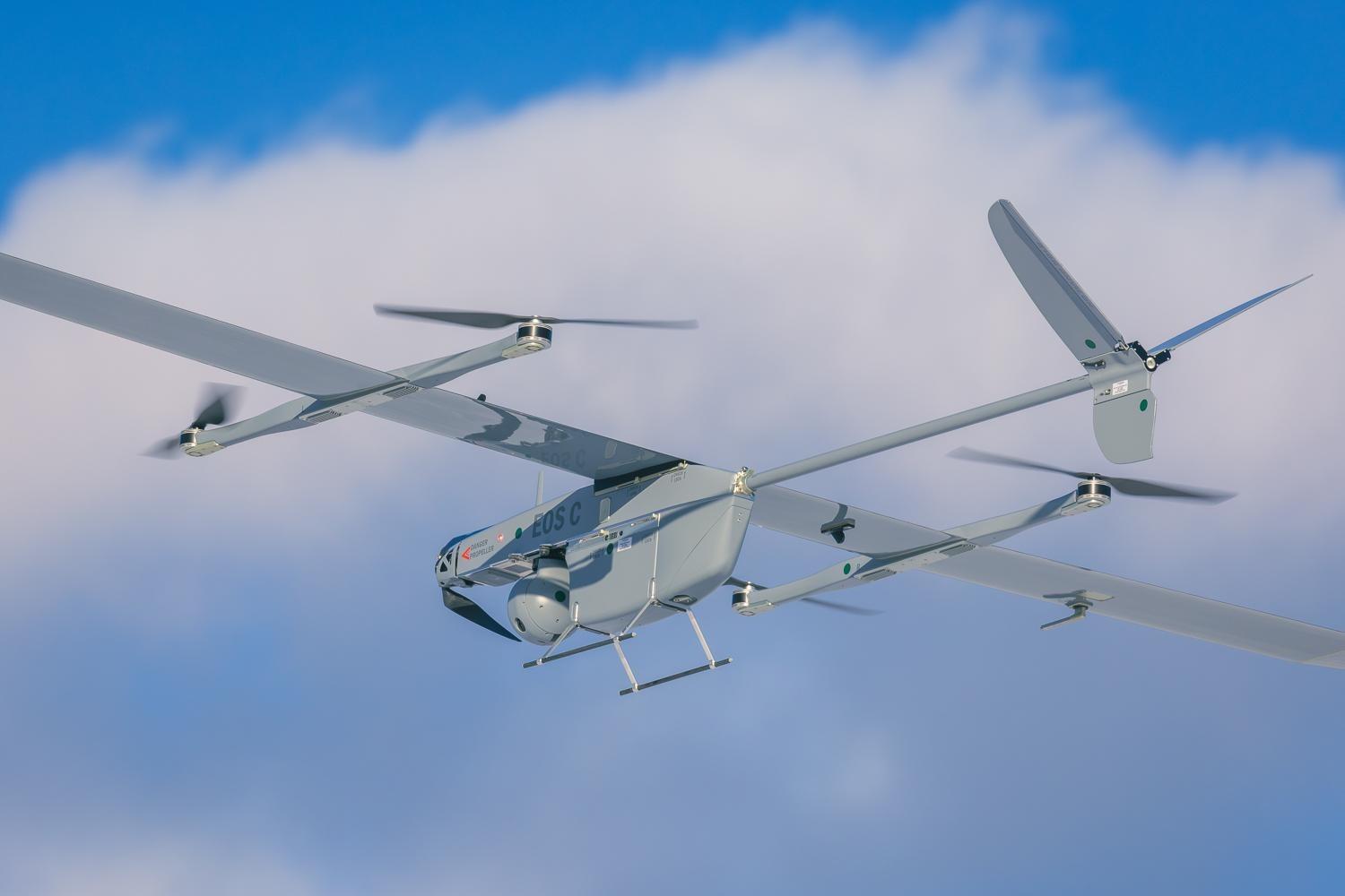 The EOS C is a high-performance VTOL UAV with best-in-class flight performance. The UAV is equipped with large wings and a high-quality camera that can provide a clear picture from a great height.