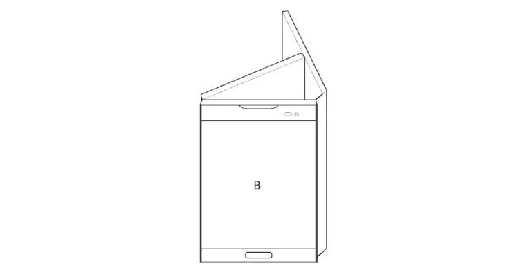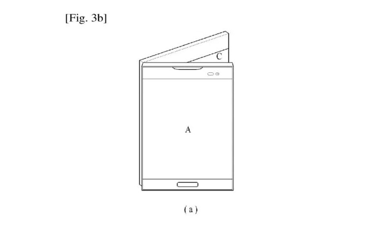 AT LG Represented images of a triple device that can be folded like a brochure or flyer. The main one can be either a screen in the middle or side displays. On Sketches depict different locations of the physical button " Home " .