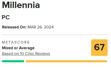 Millennia got 67 points on Metacritic and 60 points on Opencritic, with only 29% of recommendations.