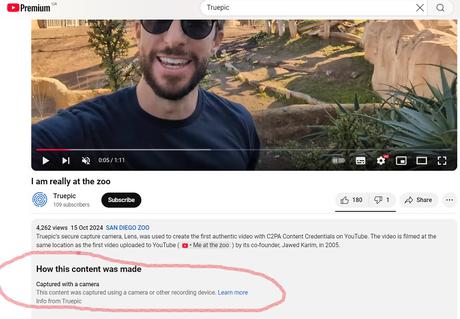 YouTube uses the C2PA standard to identify "real" videos - this feature will only work with recording devices and tools that support metadata.