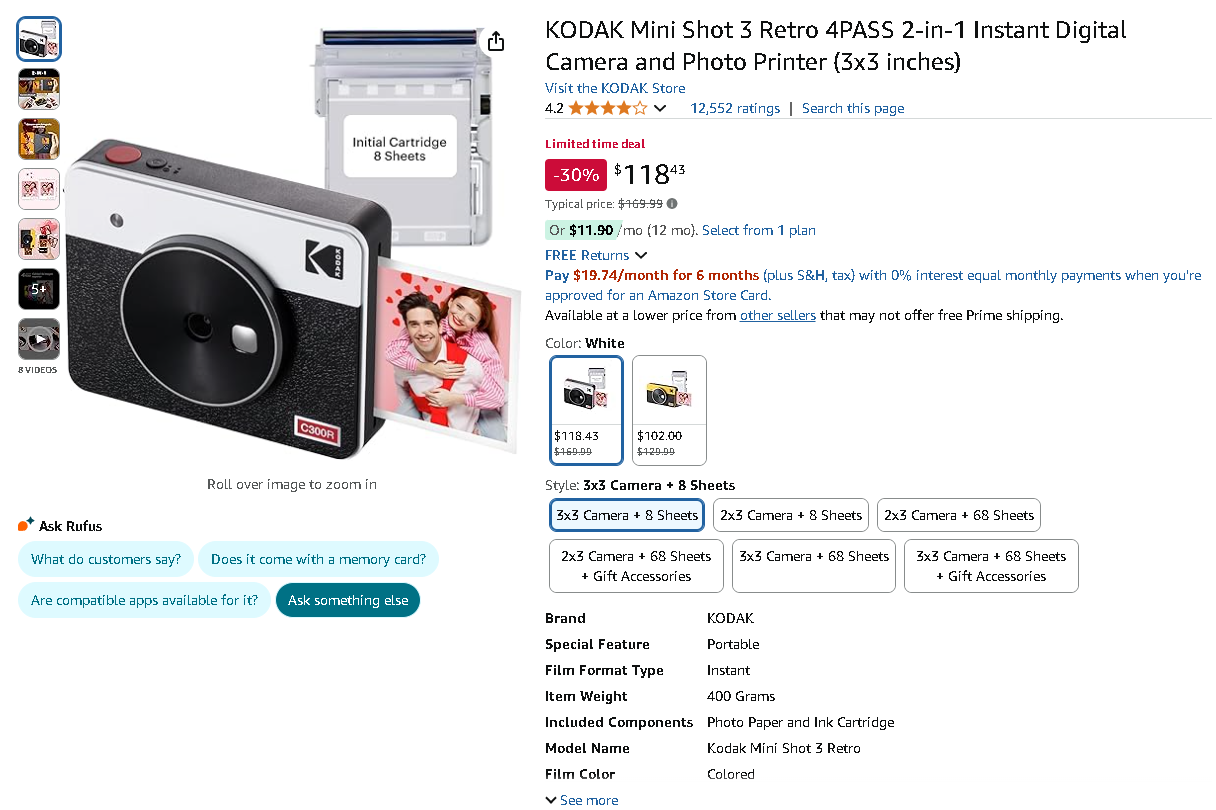 With its blend of retro charm and modern technology, plus the current significant discount, the KODAK Mini Shot 3 Retro offers an exciting way to capture and share your precious moments.