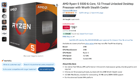 Score the AMD Ryzen 5 5500 with an Amazing 52% Discount on Amazon.com