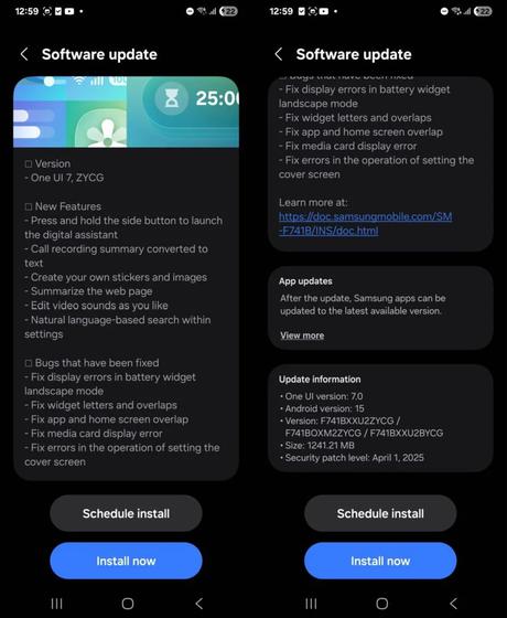 In addition, the update adds the ability to summarise text with Galaxy AI, making it easier to process information, and it includes the April 2025 security patch, making these devices the first to receive it. Also fixed in this version of the software are bugs related to widgets, overlapping UI elements, and media card display.