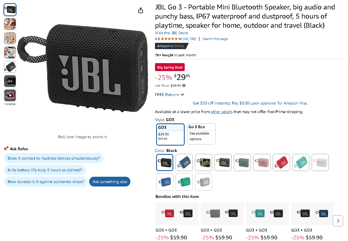With its combination of premium JBL sound, rugged durability, and pocket-friendly size, the JBL Go 3 offers exceptional value, especially at this discounted price. Take advantage of this limited-time offer to add this versatile little speaker to your audio collection!