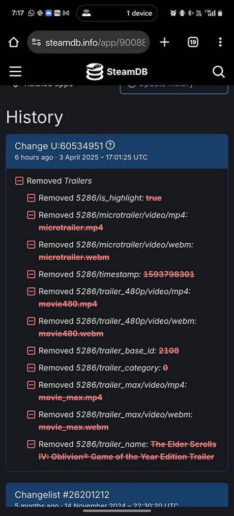 An attentive user under the nickname JavaTheHuttese found in the SteamDB database that Bethesda removed Oblivion trailers from the game's Steam page.