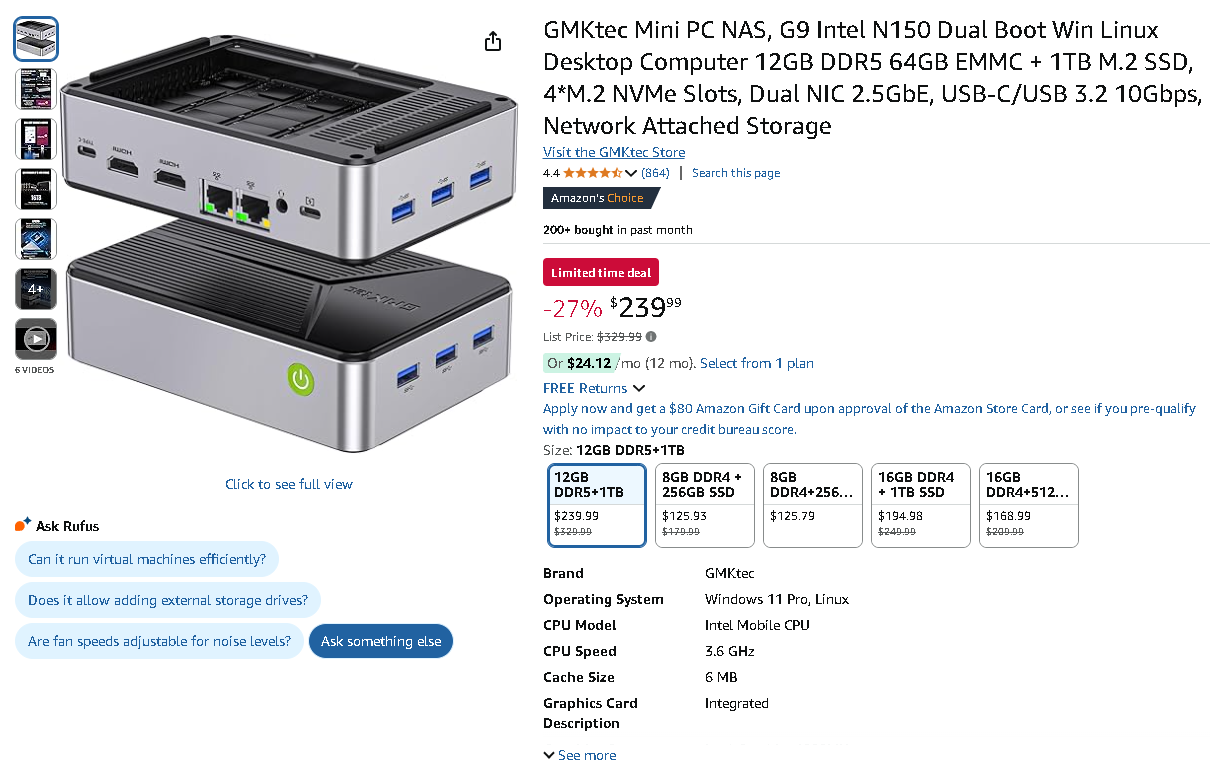 The GMKtec G9 Mini PC is now available for $239.99 $329.99, saving you $90.00 (27%) off its regular price on Amazon.