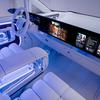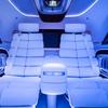Atmospheric lighting and a ceiling light combine with a flavour diffuser, and the lighting can change to the beat of the music. While the focus is on the rear row, the front is not neglected either, with a huge Superscreen occupying the entire width of the front panel.