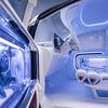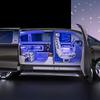The Vision V was originally conceived as a car "to be ridden in, not driven". This statement is emphasised by the 65-inch 4K screen extending from the floor. Transparent floor panels allow you to watch it move, while seven projectors hidden in the ceiling and floor, plus blackout side windows and a partition between driver and passengers, create an immersive 360-degree projection experience.