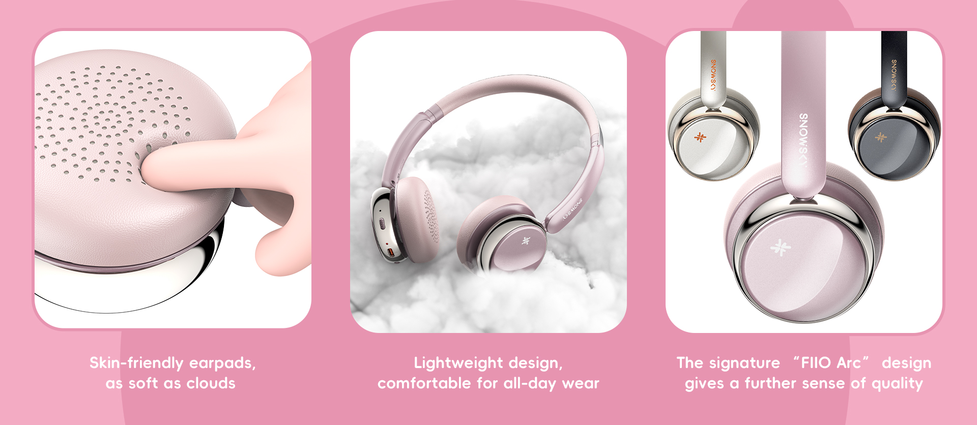The headphones have a rounded shape with rotating ear cushions and a soft headband that does not put pressure on the head. They weigh only 155 grams, so they are comfortable to wear for a long time.