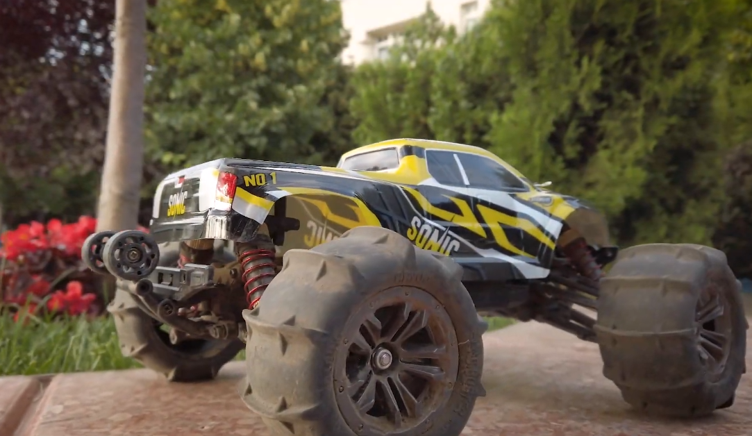 The complete chassis of this RC truck is created out of nylon. It has several properties, such as high resistance to chemicals, elasticity, and insularity. With all these properties combined, this gives the truck a longer life cycle and better collision resistance. The body frame and tires are made of thermoplastic rubber designed to enhance abrasive resistance and provide the tires with a good grip as it races.