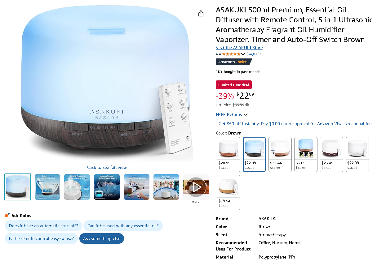 Secure the ASAKUKI Premium Essential Oil Diffuser at an Amazing Price on Amazon.com