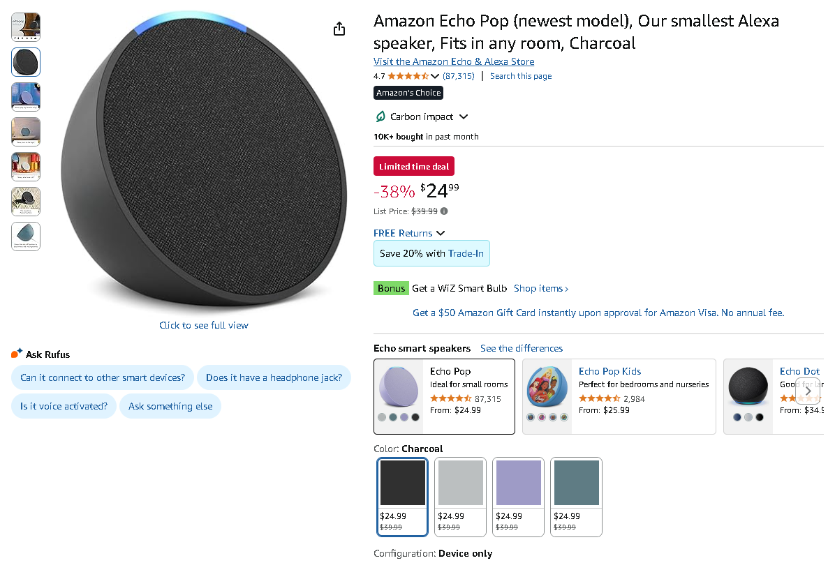 Get the Amazon Echo Pop Smart Speaker at Rock-Bottom Pricing on Amazon.com