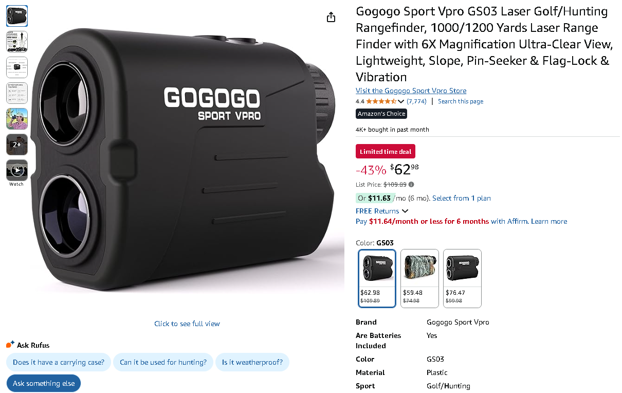 Here's where it gets exciting: The Gogogo Sport GS03 rangefinder is currently available for just $62.98 down from $109.89 – that's an impressive 43% discount! Professional-grade precision at amateur-friendly pricing.