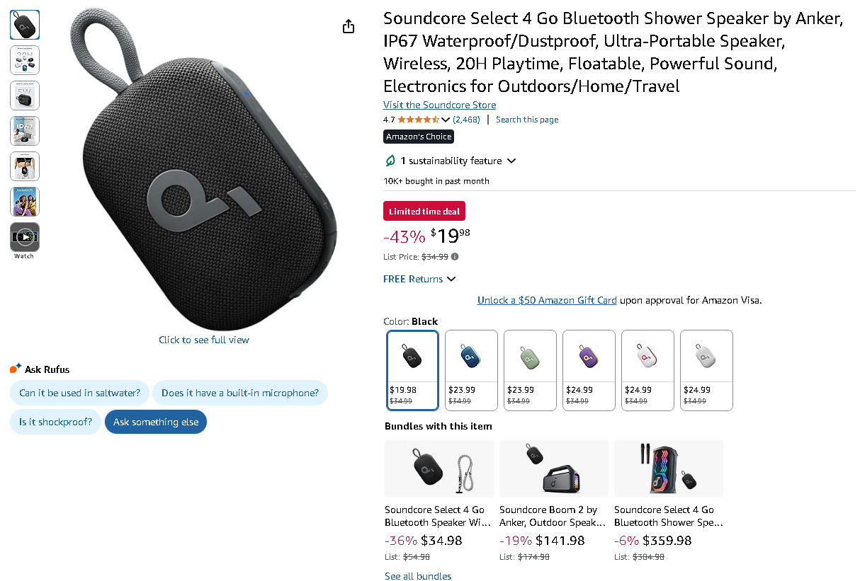 Ready for some serious savings? The Soundcore Select 4 Go is currently priced at just $19.98 instead of $34.99 – that's a fantastic 43% savings! Premium portable audio has never been this affordable.