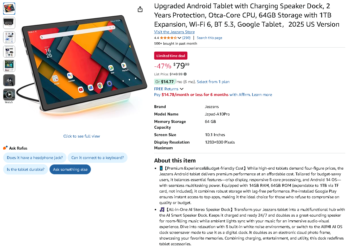 The innovative Jeazans A10 Pro Android Tablet with Speaker Dock is currently available for $79.99, slashed from $149.99 – an incredible 47% savings! A deal so good, it's like getting premium technology at bargain-basement prices.