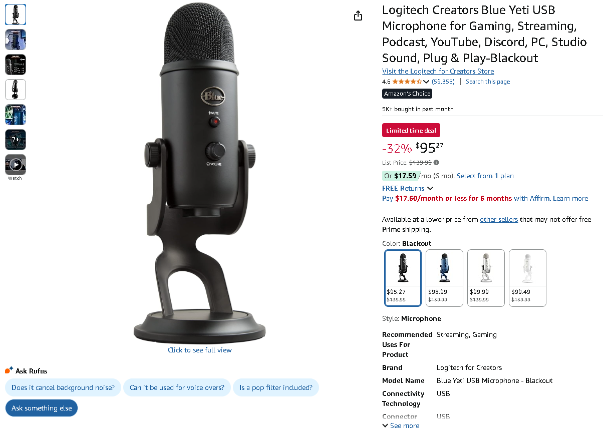 The industry-leading Logitech Blue Yeti USB microphone is currently priced at $95.27, marked down from $139.99 – delivering a substantial 32% savings!